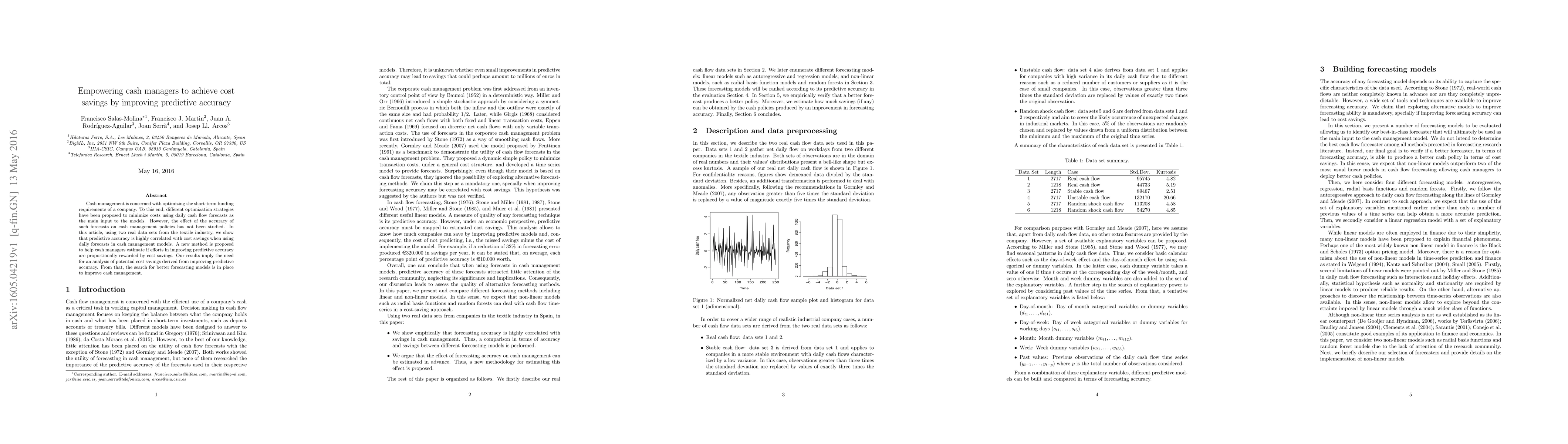 This paper investigates the correlation between predictive accuracy of daily cash flow forecasts and cost savings in cash management. It proposes a new method to assess if enhanced forecast accuracy leads to proportional cost reductions, emphasizing the importance of improving forecasting models to optimize cash management strategies.