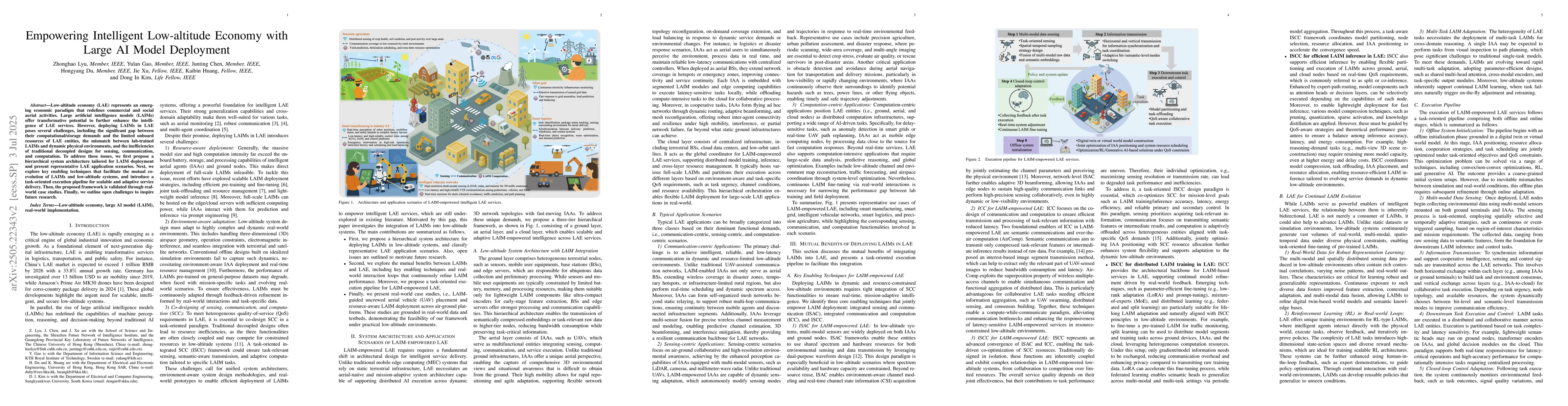 The paper presents a tailored hierarchical system architecture, key enabling techniques, and a task-oriented execution pipeline for LAIM deployment in low-altitude economy services.