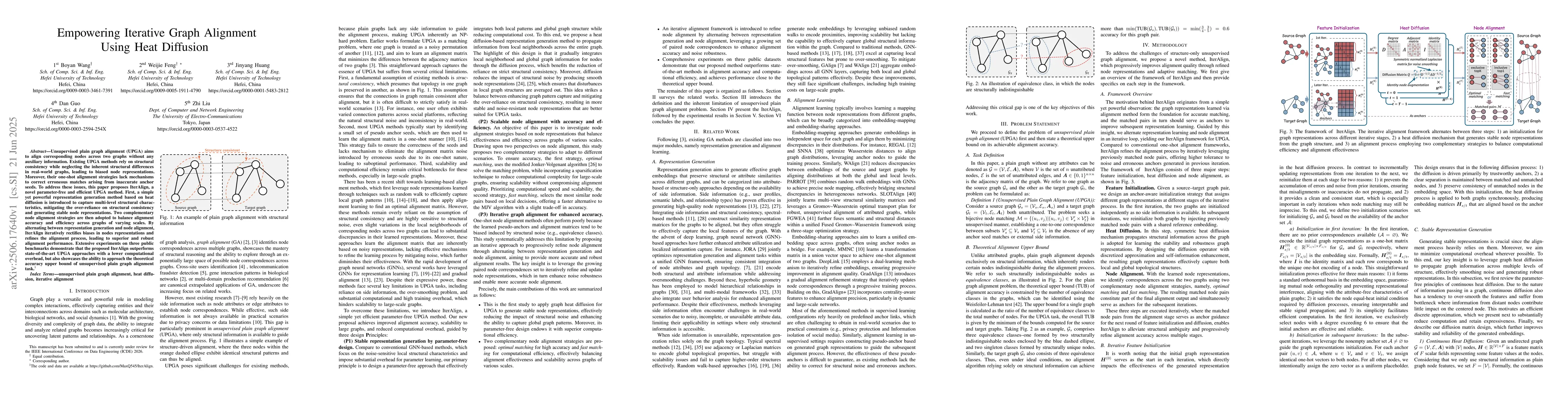 Unsupervised plain graph alignment (UPGA) aims to align corresponding nodes across two graphs without any auxiliary information. Existing UPGA methods rely on structural consistency while neglecting the inherent structural differences in real-world graphs, leading to biased node representations. Moreover, their one-shot alignment strategies lack mechanisms to correct erroneous matches arising from inaccurate anchor seeds. To address these issues, this paper proposes IterAlign, a novel parameter-free and efficient UPGA method. First, a simple yet powerful representation generation method based on heat diffusion is introduced to capture multi-level structural characteristics, mitigating the over-reliance on structural consistency and generating stable node representations. Two complementary node alignment strategies are then adopted to balance alignment accuracy and efficiency across graphs of varying scales. By alternating between representation generation and node alignment, IterAlign iteratively rectifies biases in nodes representations and refines the alignment process, leading to superior and robust alignment performance. Extensive experiments on three public benchmarks demonstrate that the proposed IterAlign outperforms state-of-the-art UPGA approaches with a lower computational overhead, but also showcases the ability to approach the theoretical accuracy upper bound of unsupervised plain graph alignment task.