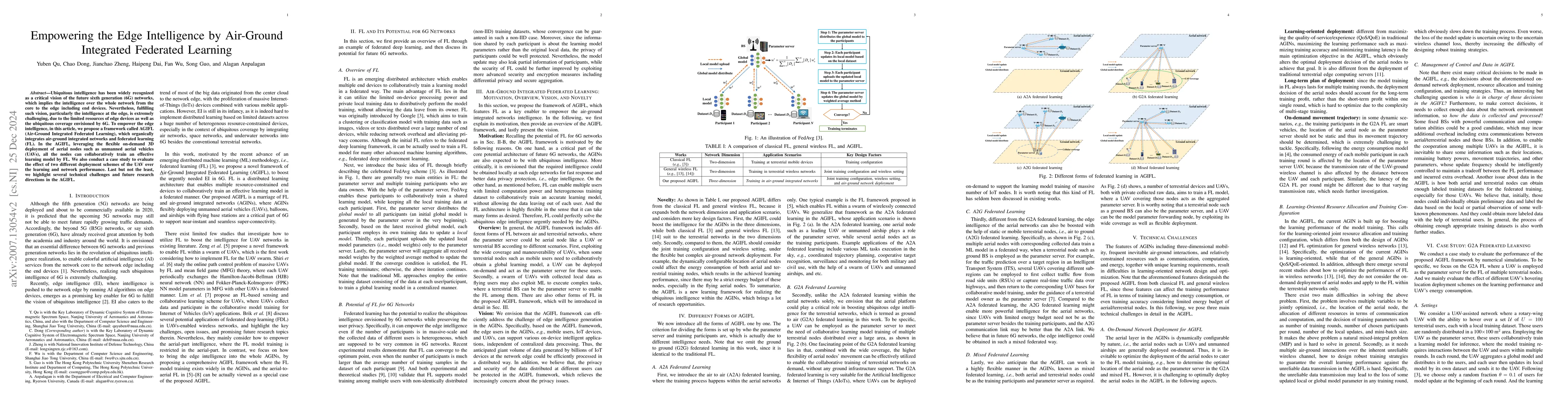 This paper proposes AGIFL, a framework integrating air-ground networks and federated learning to enhance edge intelligence in 6G networks. The study evaluates the impact of UAV deployment on learning and network performance, while also discussing technical challenges and future research directions.