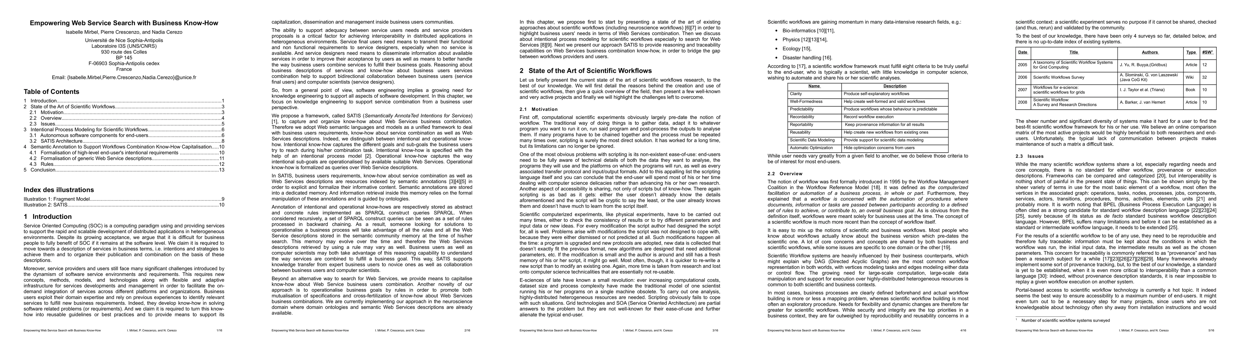 This paper reviews existing scientific workflow approaches to identify business needs for Web Service combinations and proposes SATIS, an approach that enhances reasoning and traceability for bridging the gap between workflow providers and users.