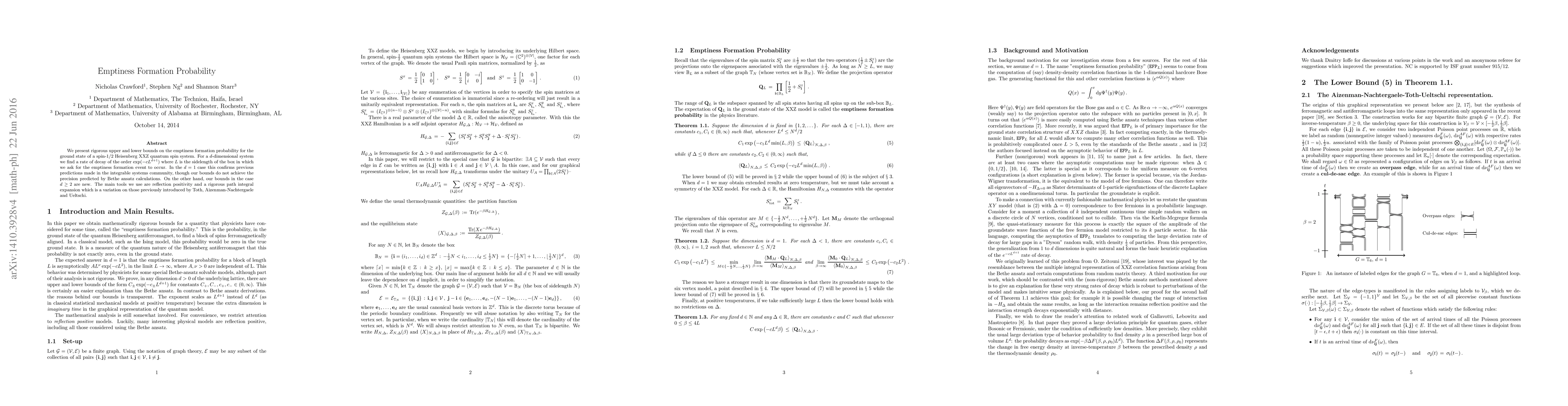 New bounds have been set on the probability of emptiness formation in a spin-1/2 Heisenberg XXZ quantum system, with rates of decay varying exponentially with system size for d=1 and polynomially for d>=2.