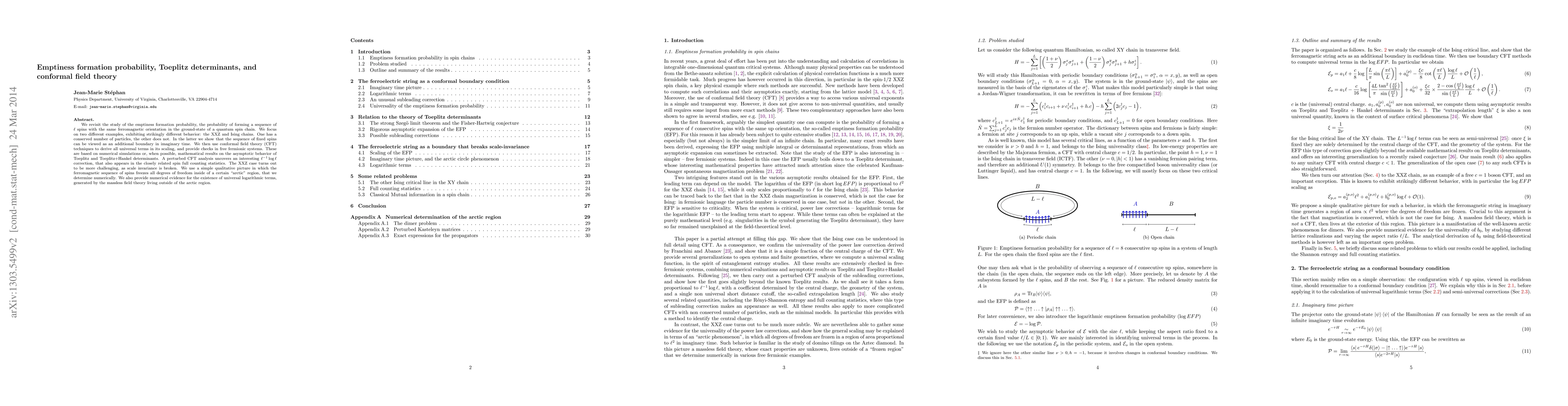 We revisit the study of the emptiness formation probability, the probability of forming a sequence of $\ell$ spins with the same ferromagnetic orientation in the ground-state of a quantum spin chain. We focus on two different examples, exhibiting strikingly different behavior: the XXZ and Ising chains. One has a conserved number of particles, the other does not. In the latter we show that the sequence of fixed spins can be viewed as an additional boundary in imaginary time. We then use conformal field theory (CFT) techniques to derive all universal terms in its scaling, and provide checks in free fermionic systems. These are based on numerical simulations or, when possible, mathematical results on the asymptotic behavior of Toeplitz and Toeplitz+Hankel determinants. A perturbed CFT analysis uncovers an interesting $\ell^{-1}\log \ell$ correction, that also appears in the closely related spin full counting statistics. The XXZ case turns out to be more challenging, as scale invariance is broken. We use a simple qualitative picture in which the ferromagnetic sequence of spins freezes all degrees of freedom inside of a certain "arctic" region, that we determine numerically. We also provide numerical evidence for the existence of universal logarithmic terms, generated by the massless field theory living outside of the arctic region.