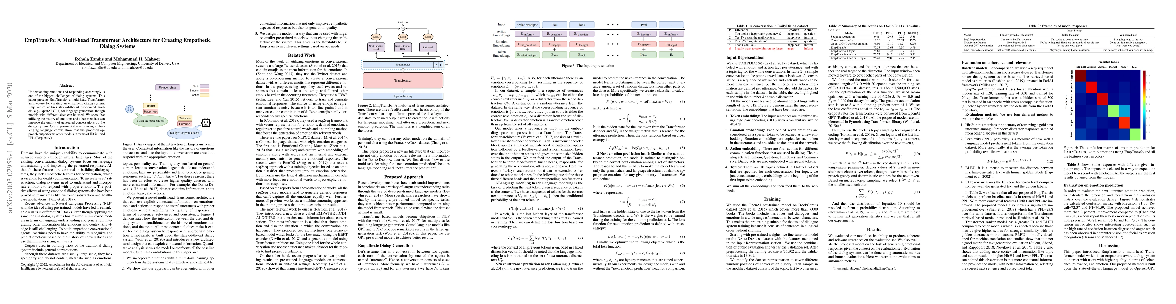 This paper introduces EmpTransfo, a multi-head Transformer architecture for empathetic dialog systems, leveraging pre-trained models to understand and respond to emotions. Experimental results demonstrate its superior performance over other models in generating emotionally aware conversations.