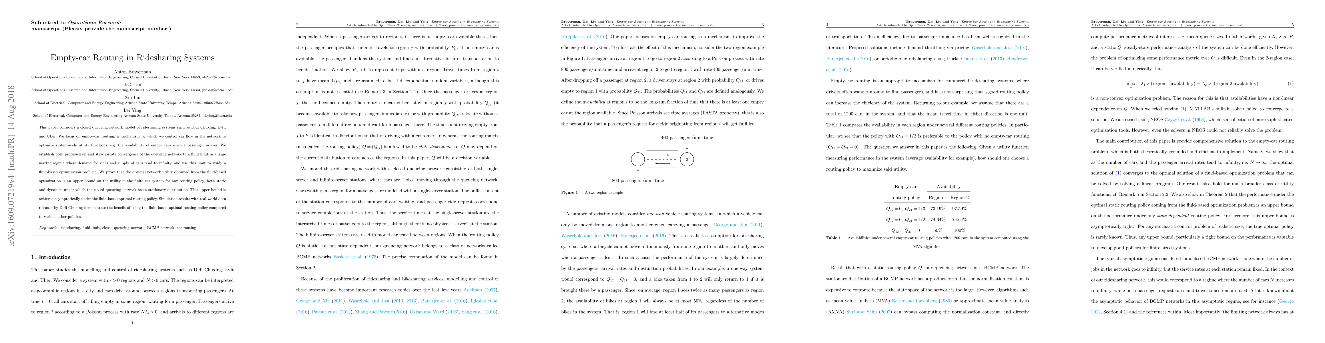 This paper considers a closed queueing network model of ridesharing systems such as Didi Chuxing, Lyft, and Uber. We focus on empty-car routing, a mechanism by which we control car flow in the network to optimize system-wide utility functions, e.g. the availability of empty cars when a passenger arrives. We establish both process-level and steady-state convergence of the queueing network to a fluid limit in a large market regime where demand for rides and supply of cars tend to infinity, and use this limit to study a fluid-based optimization problem. We prove that the optimal network utility obtained from the fluid-based optimization is an upper bound on the utility in the finite car system for any routing policy, both static and dynamic, under which the closed queueing network has a stationary distribution. This upper bound is achieved asymptotically under the fluid-based optimal routing policy. Simulation results with real-world data released by Didi Chuxing demonstrate the benefit of using the fluid-based optimal routing policy compared to various other policies.