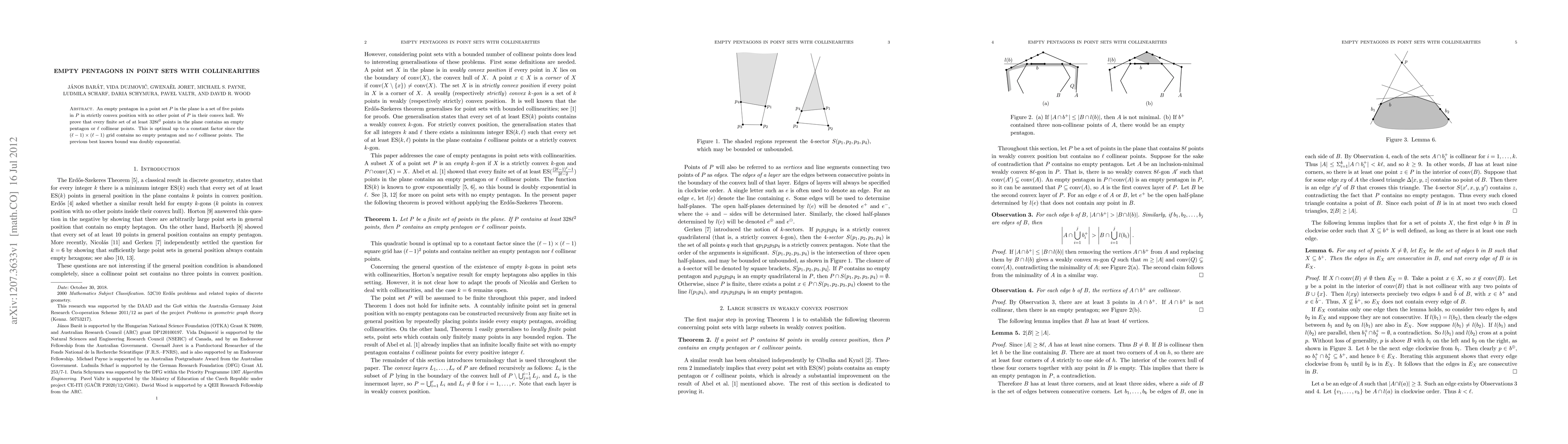 The paper proves that any set of at least 328k^2 points in the plane must contain either an empty pentagon or k collinear points, resolving a longstanding conjecture and improving upon previous doubly exponential bounds.