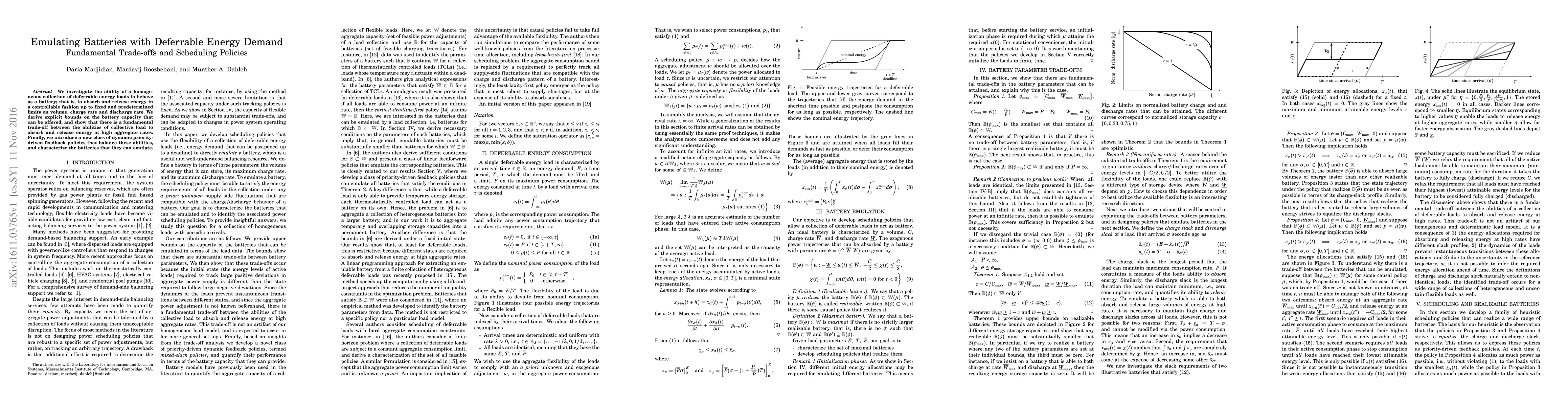 We investigate the ability of a homogeneous collection of deferrable energy loads to behave as a battery; that is, to absorb and release energy in a controllable fashion up to fixed and predetermined limits on volume, charge rate and discharge rate. We derive explicit bounds on the battery capacity that can be offered, and show that there is a fundamental trade-off between the abilities of collective load to absorb and release energy at high aggregate rates. Finally, we introduce a new class of dynamic priority-driven feedback policies that balance these abilities, and characterize the batteries that they can emulate.