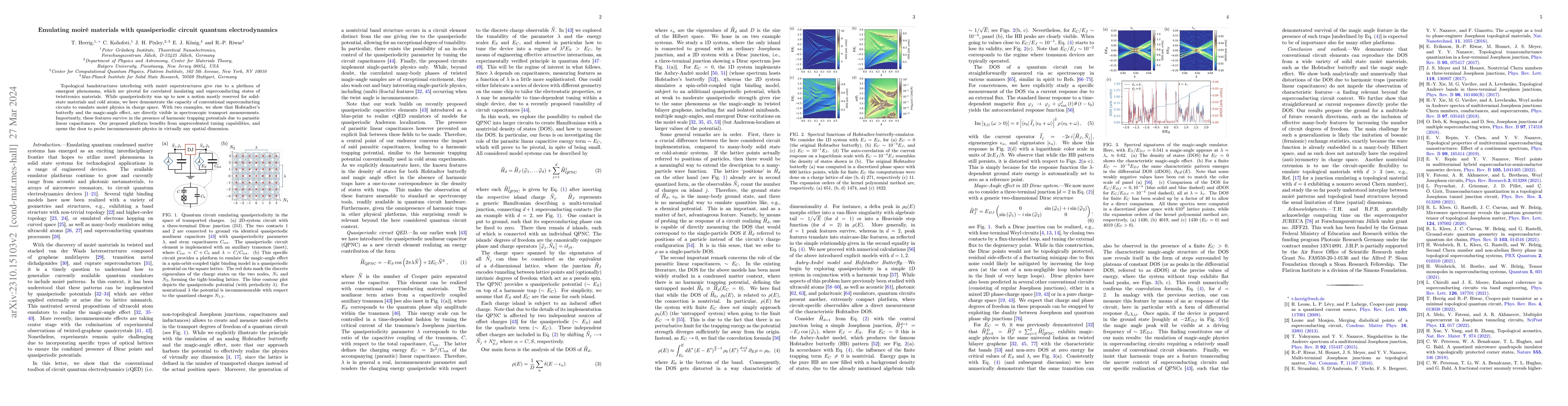 This paper demonstrates that superconducting circuits can emulate moiré materials' topological bandstructures, revealing phenomena like Hofstadter's butterfly and the magic-angle effect in spectroscopic transport. The results show that these effects persist despite parasitic capacitances, offering a tunable platform to explore incommensurate physics.
