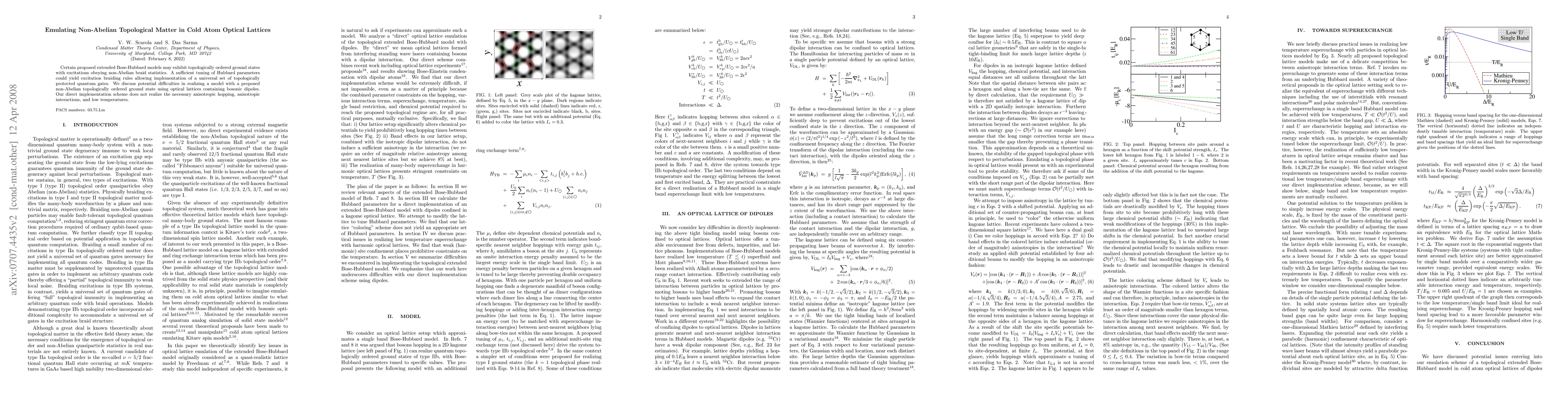 Certain proposed extended Bose-Hubbard models may exhibit topologically ordered ground states with excitations obeying non-Abelian braid statistics. A sufficient tuning of Hubbard parameters could yield excitation braiding rules allowing implementation of a universal set of topologically protected quantum gates. We discuss potential difficulties in realizing a model with a proposed non-Abelian topologically ordered ground state using optical lattices containing bosonic dipoles. Our direct implementation scheme does not realize the necessary anisotropic hopping, anisotropic interactions, and low temperatures.