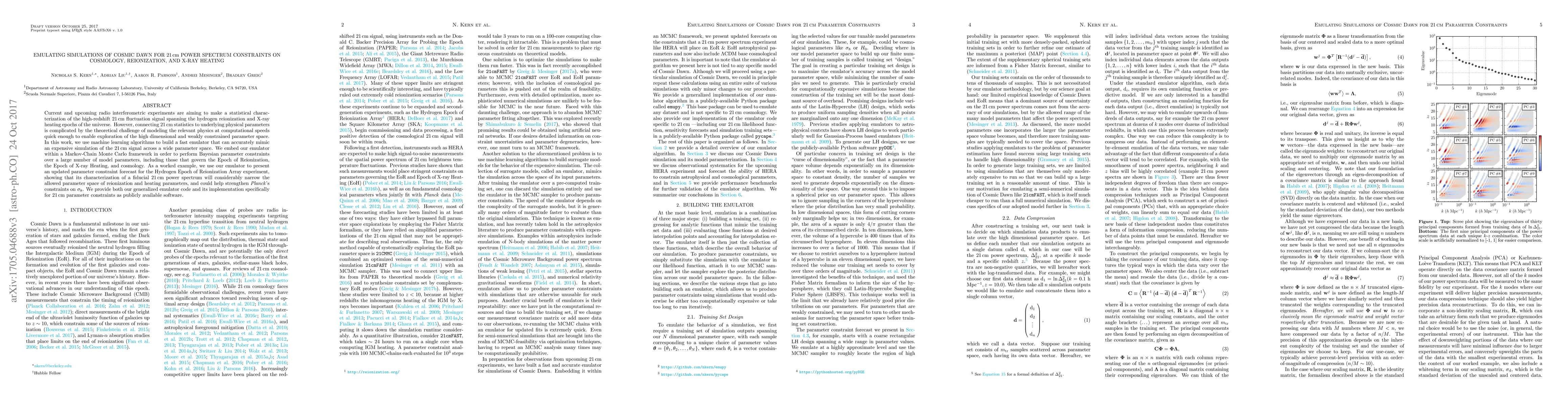This paper develops a machine learning emulator to quickly simulate the 21cm power spectrum, aiding in the study of the cosmic dawn, reionization, and X-ray heating. The emulator, integrated into a Markov-Chain Monte Carlo framework, enables efficient exploration of cosmological parameters, and it forecasts improved constraints for the Hydrogen Epoch of Reionization Array experiment.