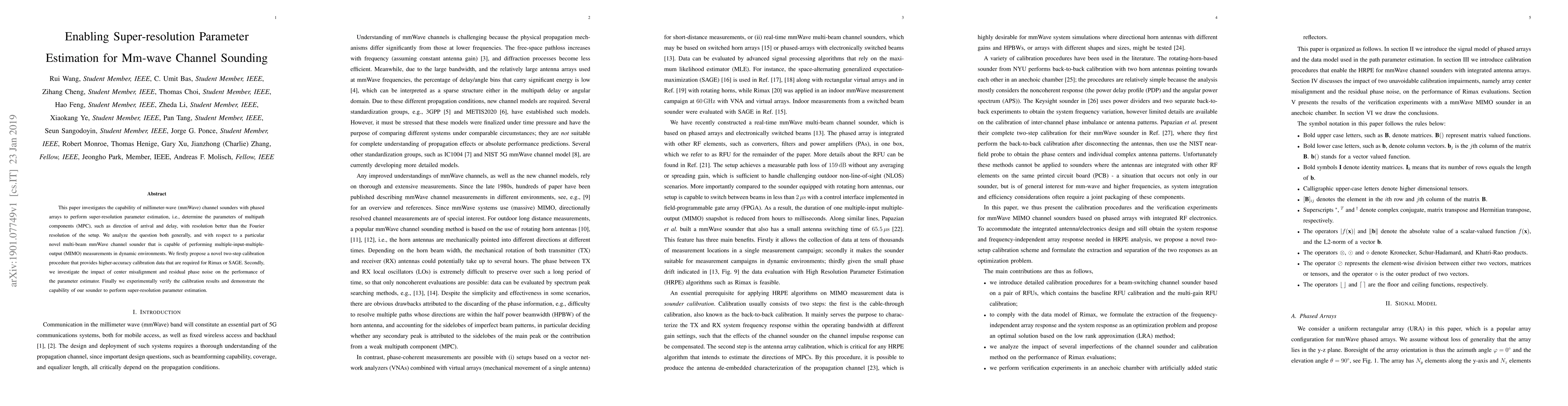 This paper explores how mmWave channel sounders with phased arrays can achieve super-resolution parameter estimation for multipath components, proposing a novel calibration procedure and analyzing the impact of misalignment and phase noise. Experimental results confirm the sounder's ability to perform super-resolution estimation.