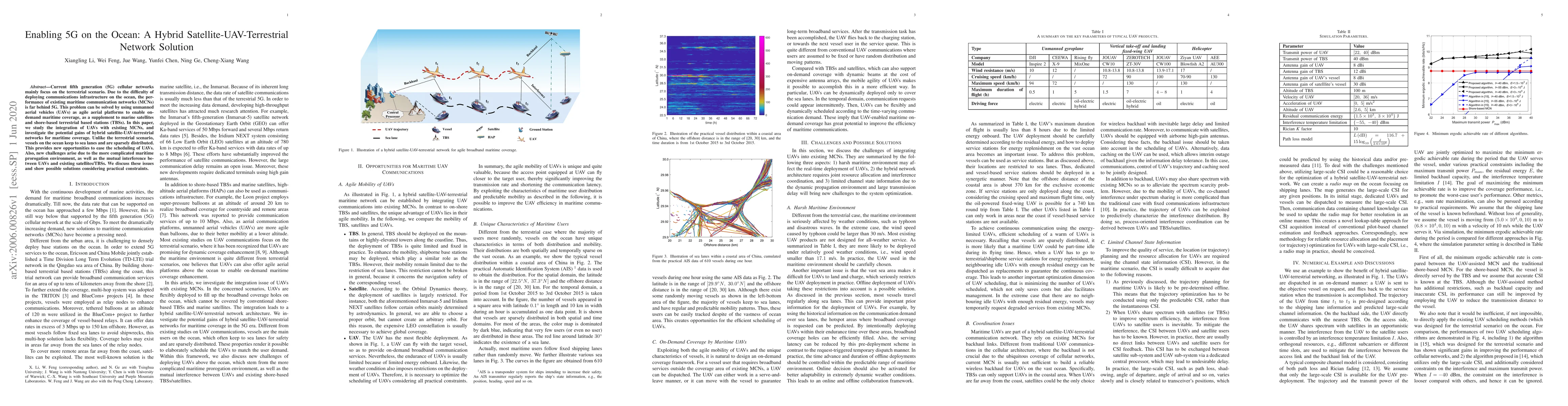 This paper explores integrating unmanned aerial vehicles (UAVs) with marine satellite and terrestrial networks to enhance maritime communication, addressing the challenges of sparse vessel distribution and complex maritime propagation. The study investigates the potential benefits and solutions for managing interference and scheduling in hybrid satellite-UAV-terrestrial networks.