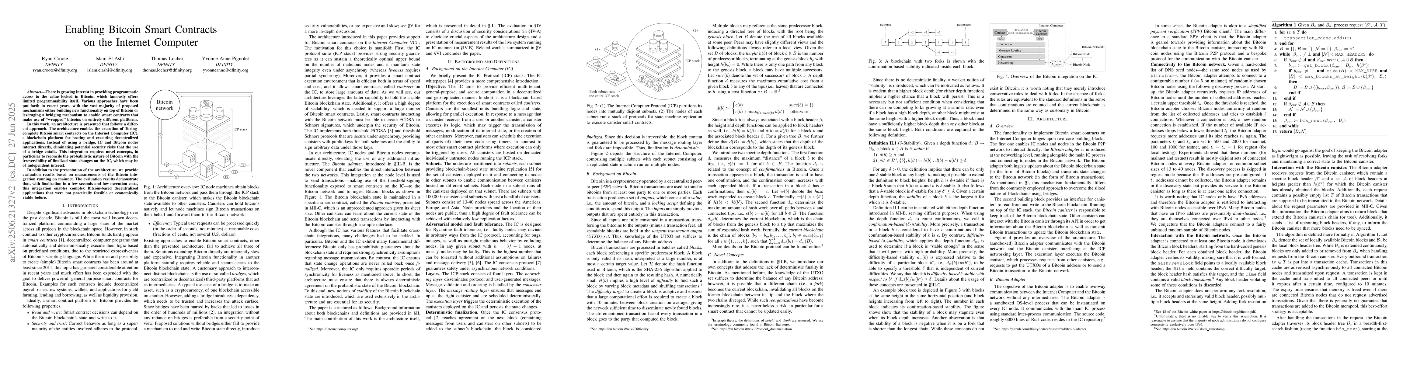 The research presents an architecture that enables direct interaction between Internet Computer nodes and Bitcoin nodes, utilizing a sandboxed Bitcoin adapter and a smart contract (canister) that tracks Bitcoin state and handles transactions, supported by measurements on mainnet.