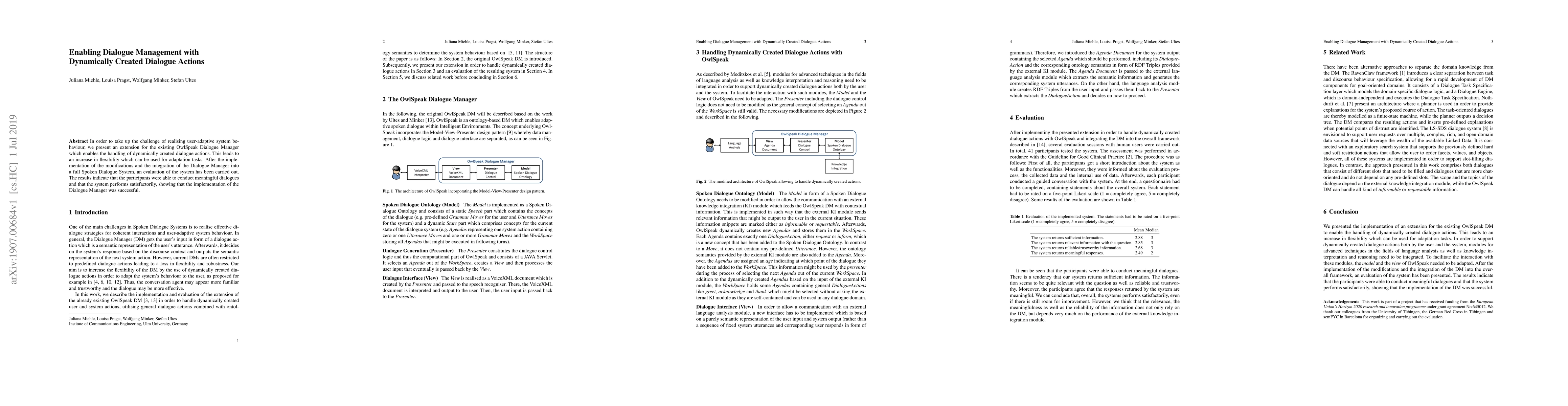 In order to take up the challenge of realising user-adaptive system behaviour, we present an extension for the existing OwlSpeak Dialogue Manager which enables the handling of dynamically created dialogue actions. This leads to an increase in flexibility which can be used for adaptation tasks. After the implementation of the modifications and the integration of the Dialogue Manager into a full Spoken Dialogue System, an evaluation of the system has been carried out. The results indicate that the participants were able to conduct meaningful dialogues and that the system performs satisfactorily, showing that the implementation of the Dialogue Manager was successful.