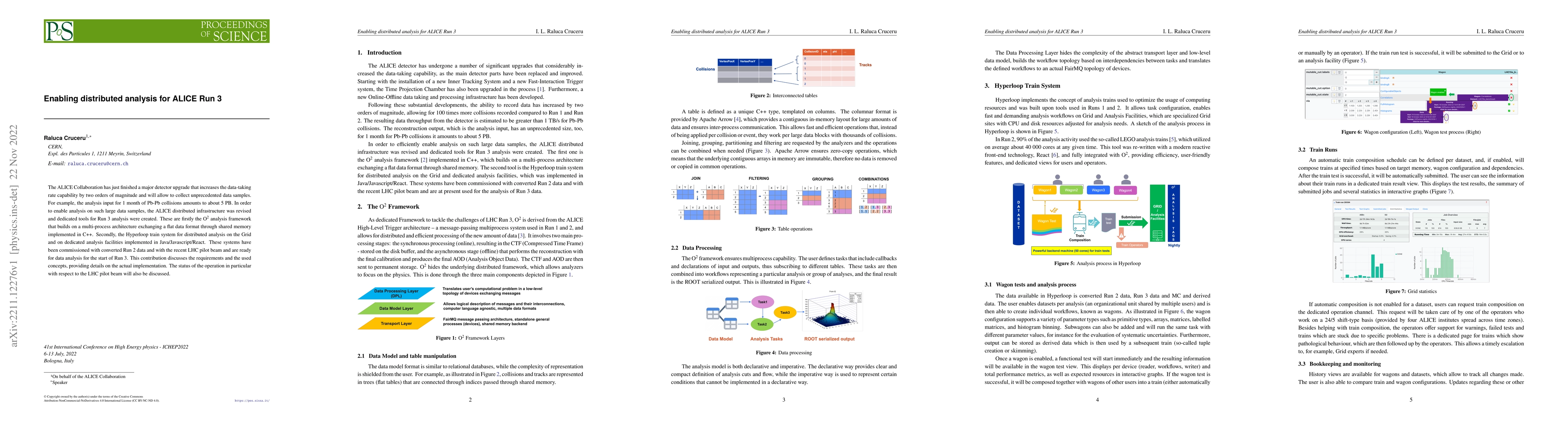 The ALICE Collaboration upgraded its detector to handle a two-order increase in data-taking rate, necessitating a revised distributed infrastructure and new tools like the $\mathrm{O^2}$ framework and Hyperloop system for managing large data samples. These systems are now operational and ready for analysis of Run 3 data.