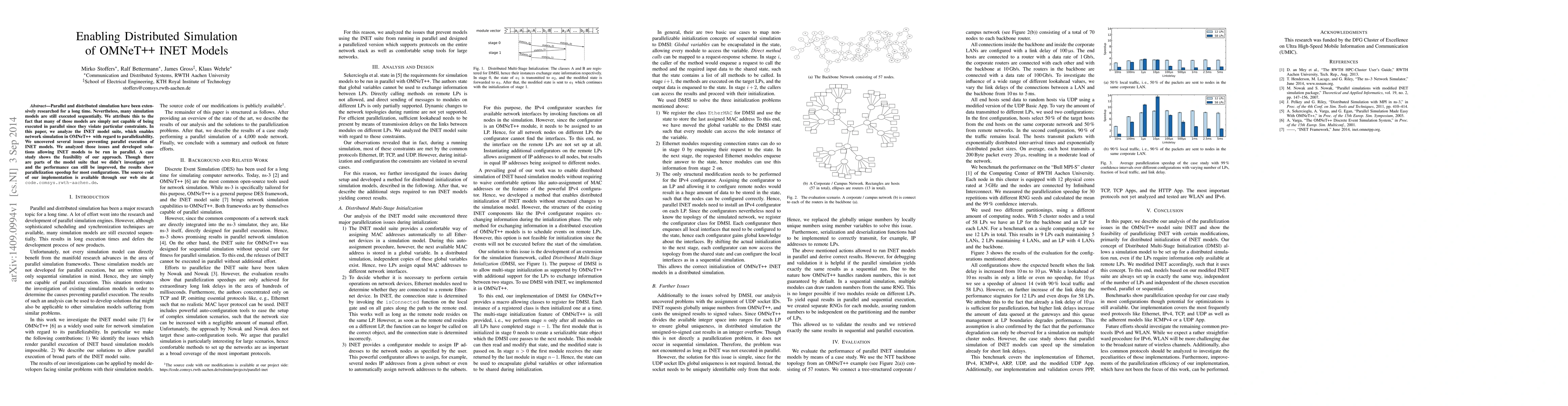 This paper investigates the parallelizability of OMNeT++'s INET model suite, identifying issues that hinder parallel execution and proposing solutions to enable parallel simulation. Initial results demonstrate a parallelization speedup for most configurations, though further improvements and broader model coverage are needed.