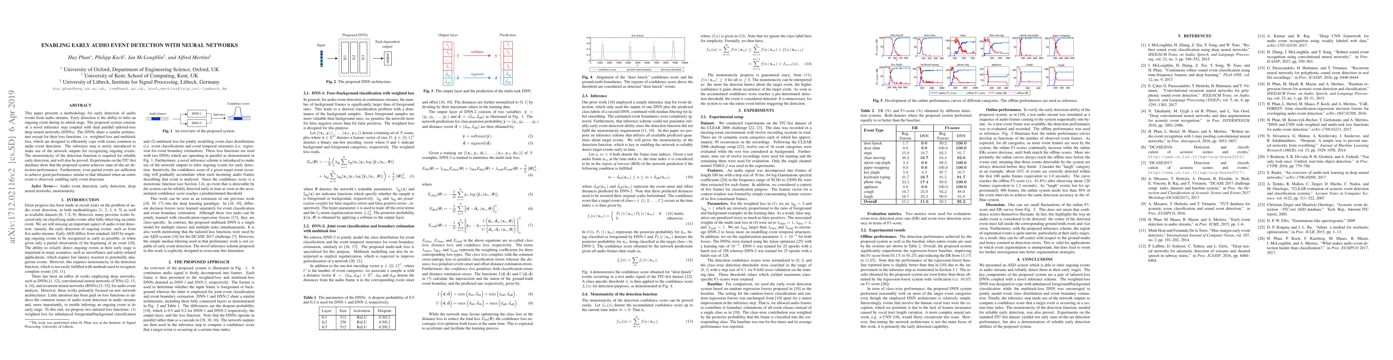 This paper proposes a novel system for early detection of audio events using dual parallel tailored-loss deep neural networks and a new inference step, achieving state-of-the-art performance on the ITC-Irst database, and demonstrating that partial events can still yield effective early detection.