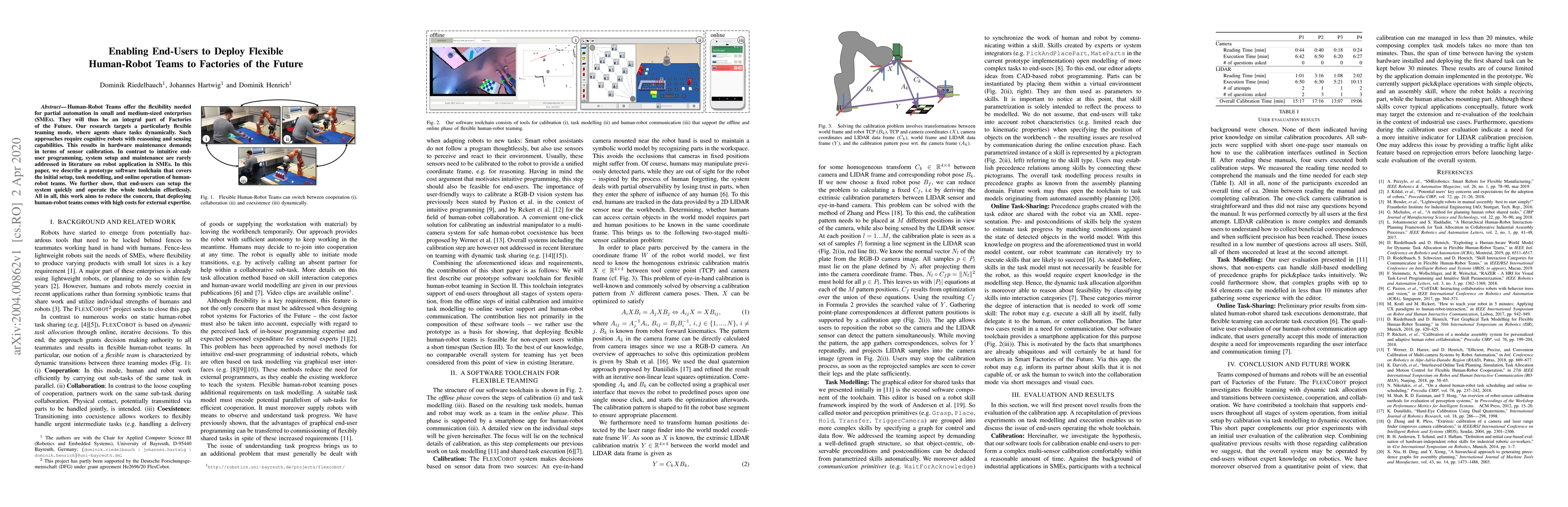 Human-Robot Teams offer the flexibility needed for partial automation in small and medium-sized enterprises (SMEs). They will thus be an integral part of Factories of the Future. Our research targets a particularly flexible teaming mode, where agents share tasks dynamically. Such approaches require cognitive robots with reasoning and sensing capabilities. This results in hardware maintenance demands in terms of sensor calibration. In contrast to intuitive end-user programming, system setup and maintenance are rarely addressed in literature on robot application in SMEs. In this paper, we describe a prototype software toolchain that covers the initial setup, task modelling, and online operation of human-robot teams. We further show, that end-users can setup the system quickly and operate the whole toolchain effortlessly. All in all, this work aims to reduce the concern, that deploying human-robot teams comes with high costs for external expertise.