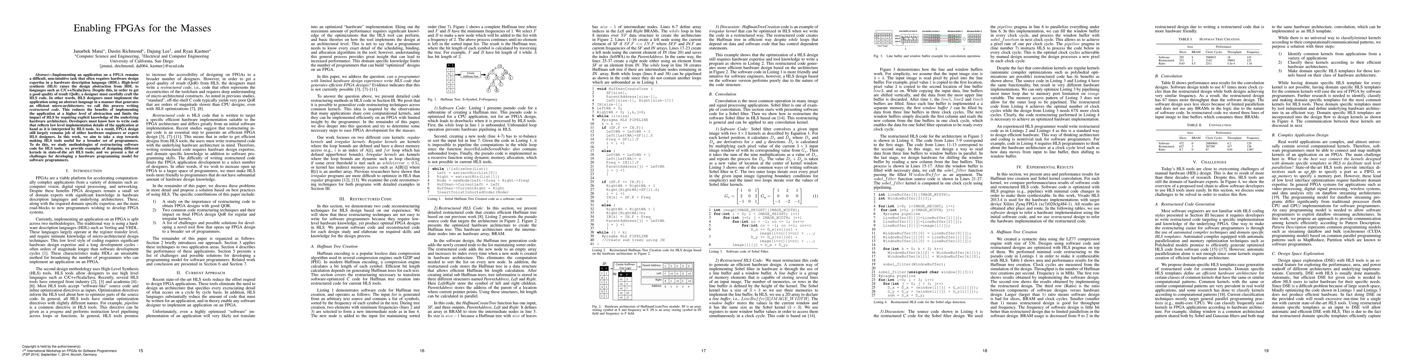 Implementing an application on a FPGA remains a difficult, non-intuitive task that often requires hardware design expertise in a hardware description language (HDL). High-level synthesis (HLS) raises the design abstraction from HDL to languages such as C/C++/Scala/Java. Despite this, in order to get a good quality of result (QoR), a designer must carefully craft the HLS code. In other words, HLS designers must implement the application using an abstract language in a manner that generates an efficient micro-architecture; we call this process writing restructured code. This reduces the benefits of implementing the application at a higher level of abstraction and limits the impact of HLS by requiring explicit knowledge of the underlying hardware architecture. Developers must know how to write code that reflects low level implementation details of the application at hand as it is interpreted by HLS tools. As a result, FPGA design still largely remains job of either hardware engineers or expert HLS designers. In this work, we aim to take a step towards making HLS tools useful for a broader set of programmers. To do this, we study methodologies of restructuring software code for HLS tools; we provide examples of designing different kernels in state-of-the art HLS tools; and we present a list of challenges for developing a hardware programming model for software programmers.