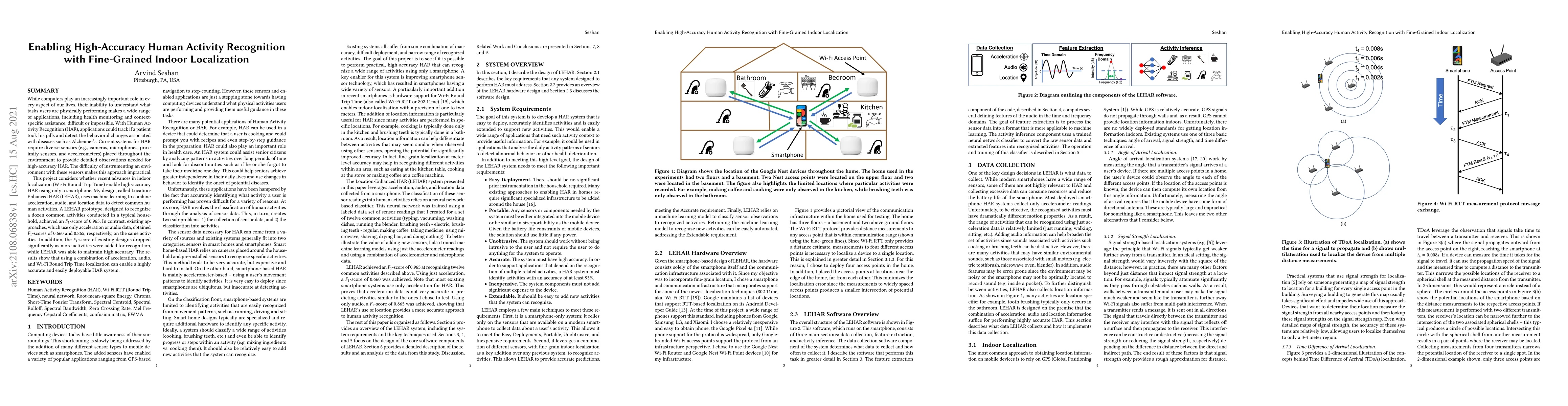 While computers play an increasingly important role in every aspect of our lives, their inability to understand what tasks users are physically performing makes a wide range of applications, including health monitoring and context-specific assistance, difficult or impossible. With Human Activity Recognition (HAR), applications could track if a patient took his pills and detect the behavioral changes associated with diseases such as Alzheimer's. Current systems for HAR require diverse sensors (e.g., cameras, microphones, proximity sensors, and accelerometers) placed throughout the environment to provide detailed observations needed for high-accuracy HAR. The difficulty of instrumenting an environment with these sensors makes this approach impractical. This project considers whether recent advances in indoor localization (Wi-Fi Round Trip Time) enable high-accuracy HAR using only a smartphone. My design, called Location-Enhanced HAR (LEHAR), uses machine learning to combine acceleration, audio, and location data to detect common human activities. A LEHAR prototype, designed to recognize a dozen common activities conducted in a typical household, achieved an F1-score of 0.965. In contrast, existing approaches, which use only acceleration or audio data, obtained F1-scores of 0.660 and 0.865, respectively, on the same activities. In addition, the F1-score of existing designs dropped significantly as more activities were added for recognition, while LEHAR was able to maintain high accuracy. The results show that using a combination of acceleration, audio, and Wi-Fi Round Trip Time localization can enable a highly accurate and easily deployable HAR system.