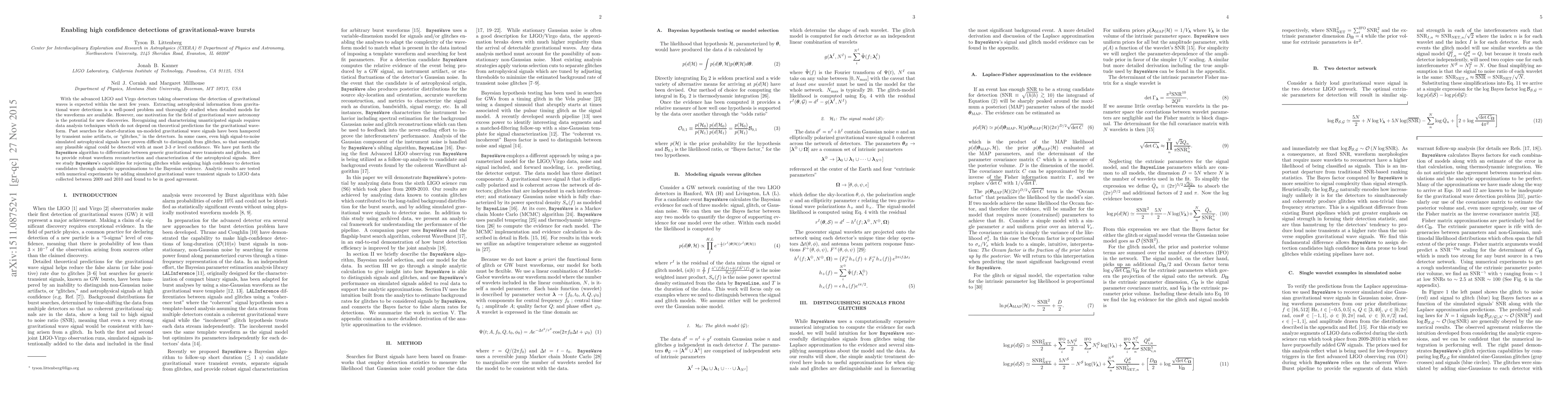 The BayesWave algorithm is developed to distinguish between unanticipated gravitational wave transients and detector noise artifacts, providing high confidence detections. Tests on LIGO data show the algorithm effectively rejects glitches while accurately characterizing astrophysical signals.