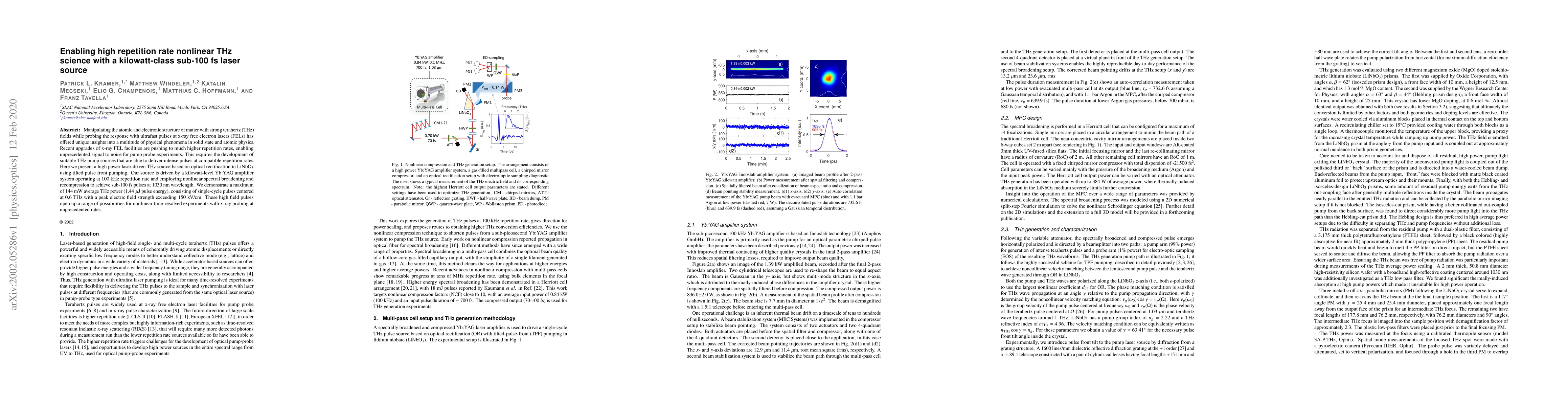 This paper presents a high-power, laser-driven THz source capable of delivering intense sub-100 fs pulses at 100 kHz repetition rates, driven by a kilowatt-level Yb:YAG amplifier system. The source achieves 144 mW average THz power, enabling advanced nonlinear time-resolved experiments with x-ray probing at high repetition rates.
