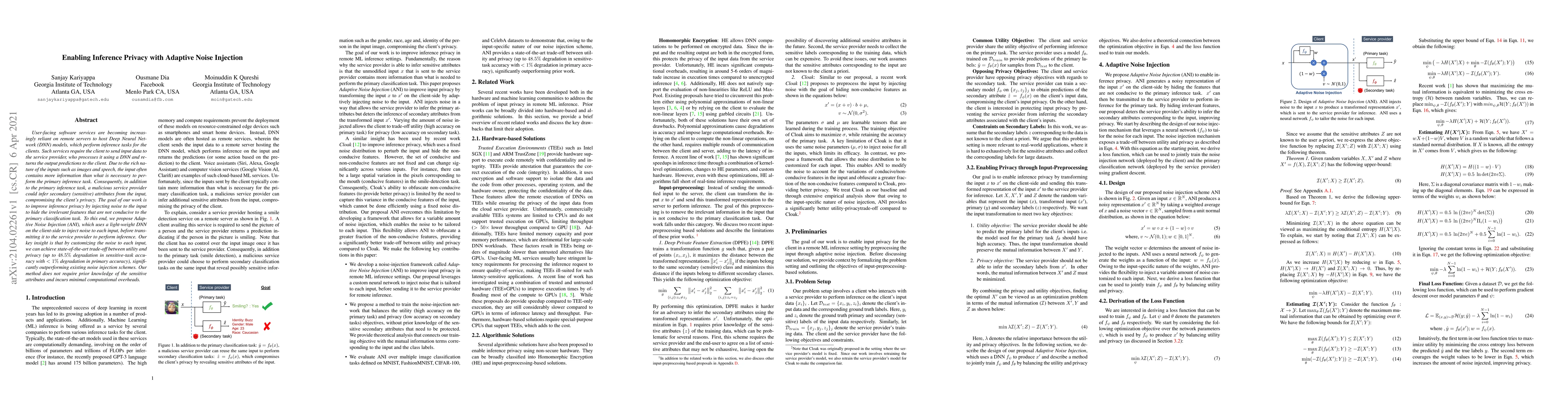 Researchers propose Adaptive Noise Injection to protect client privacy in deep neural network inference tasks by injecting noise into input data on the client-side, achieving a trade-off between utility and privacy.