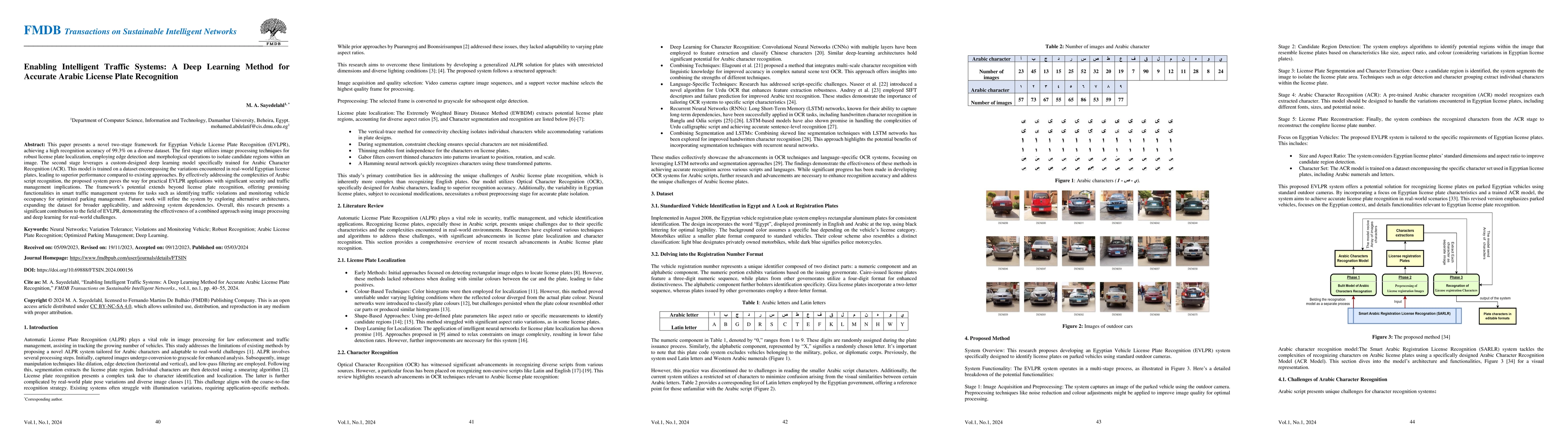 This paper presents a two-stage deep learning framework for high-accuracy Egyptian Vehicle License Plate Recognition (EVLPR), achieving 99.3% accuracy and potential applications in intelligent traffic management. Future work aims to improve system robustness and expand its dataset.