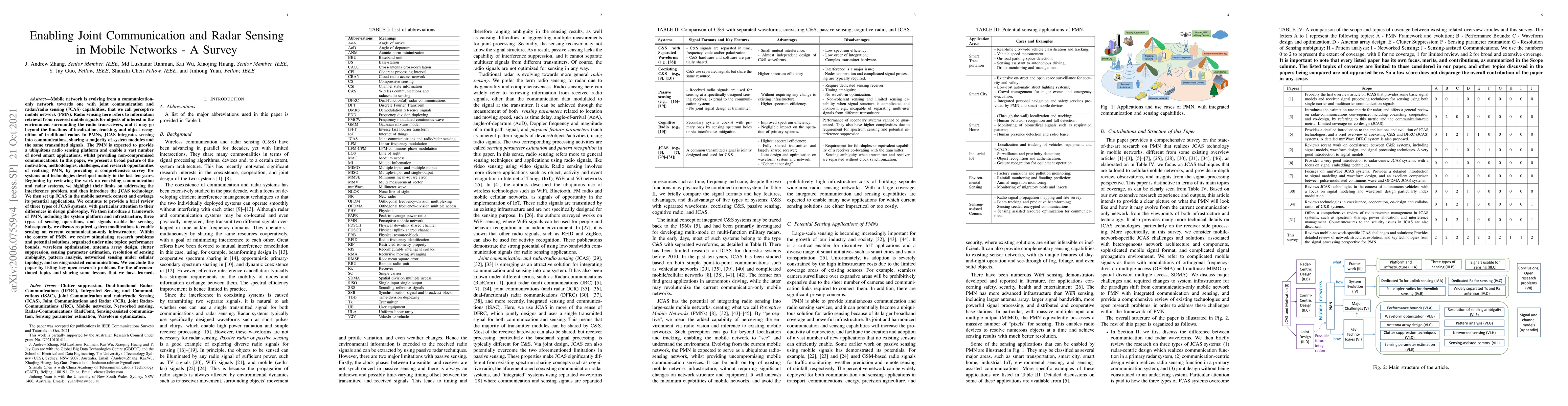 Mobile network is evolving from a communication-only network towards one with joint communication and radar/radio sensing (JCAS) capabilities, that we call perceptive mobile network (PMN). In PMNs, JCAS integrates sensing into communications, sharing a majority of system modules and the same transmitted signals. The PMN is expected to provide a ubiquitous radio sensing platform and enable a vast number of novel smart applications, whilst providing non-compromised communications. In this paper, we present a broad picture of the motivation, methodologies, challenges, and research opportunities of realizing PMN, by providing a comprehensive survey for systems and technologies developed mainly in the last ten years. Beginning by reviewing the work on coexisting communication and radar systems, we highlight their limits on addressing the interference problem, and then introduce the JCAS technology. We then set up JCAS in the mobile network context and envisage its potential applications. We continue to provide a brief review of three types of JCAS systems, with particular attention to their differences in design philosophy. We then introduce a framework of PMN, including the system platform and infrastructure, three types of sensing operations, and signals usable for sensing. Subsequently, we discuss required system modifications to enable sensing on current communication-only infrastructure. Within the context of PMN, we review stimulating research problems and potential solutions, organized under nine topics: performance bounds, waveform optimization, antenna array design, clutter suppression, sensing parameter estimation, resolution of sensing ambiguity, pattern analysis, networked sensing under cellular topology, and sensing-assisted communications. We conclude the paper by listing key open research problems for the aforementioned topics and sharing some lessons that we have learned.