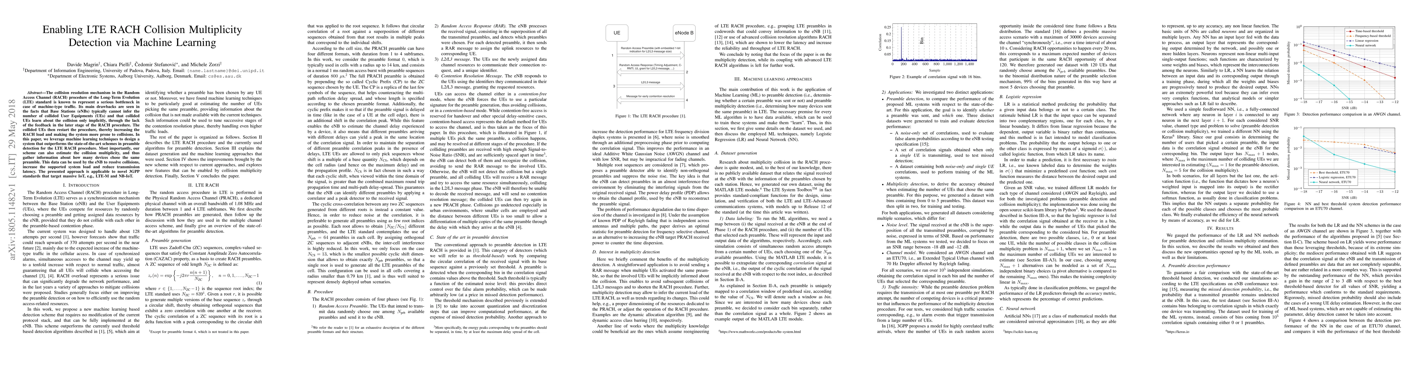 This paper proposes a machine learning-based system to detect and estimate the multiplicity of collisions in LTE's Random Access Channel (RACH) procedure, aiming to improve collision resolution and reduce system load and latency for machine-type traffic. The approach is also applicable to emerging IoT standards like LTE-M and NB-IoT.