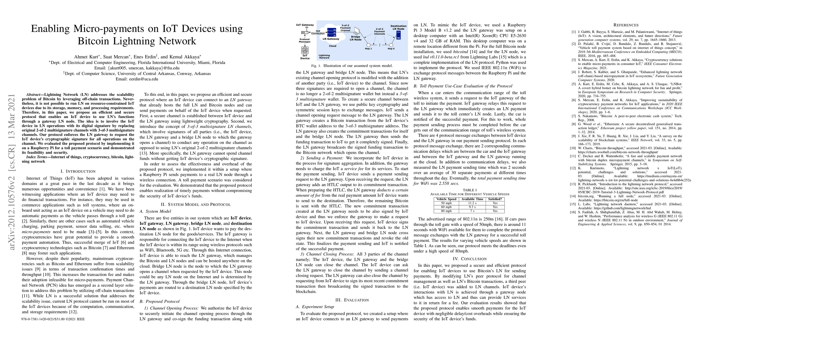 This paper proposes a protocol enabling micro-payments on IoT devices via the Bitcoin Lightning Network by using a gateway LN node to manage resource-intensive operations. The protocol replaces 2-of-2 with 3-of-3 multisignature channels, ensuring security while allowing IoT devices to participate in LN transactions.