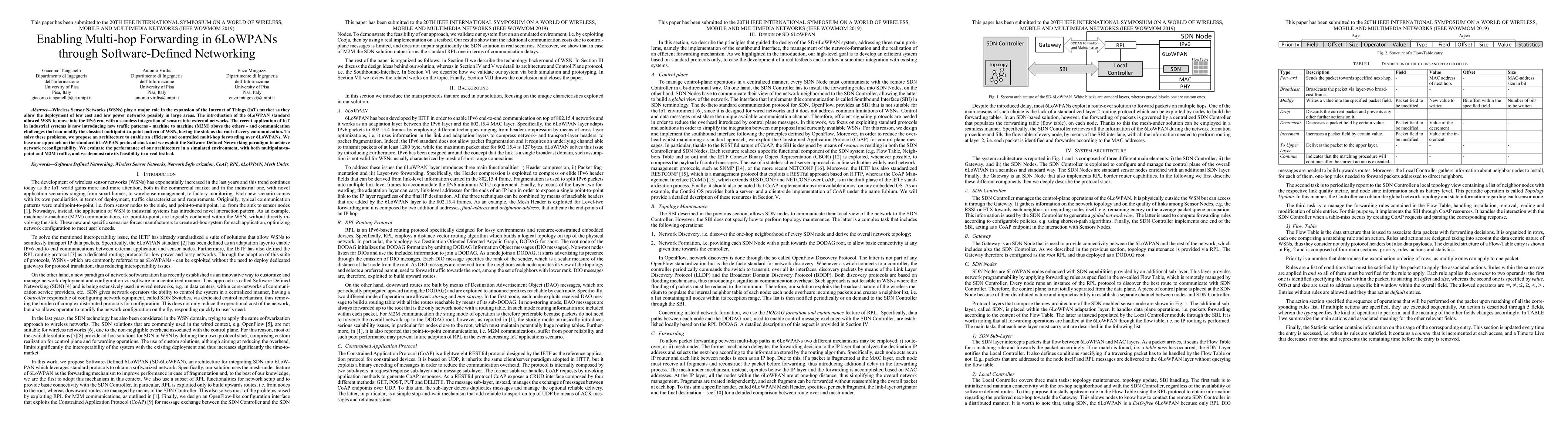 Researchers propose a software-defined networking approach to enable efficient multi-hop forwarding in 6LoWPANs, allowing for more flexible communication patterns beyond traditional point-to-point networks.