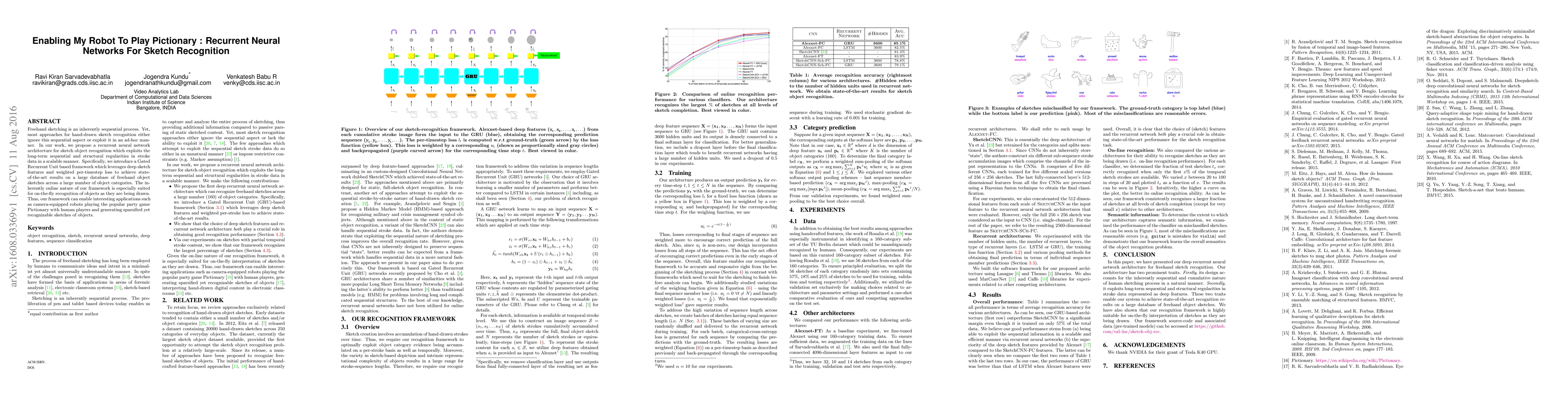 This paper proposes a recurrent neural network architecture using Gated Recurrent Units for recognizing freehand sketches, emphasizing the sequential nature of sketching. The approach achieves state-of-the-art results on a large dataset, enabling applications like robots playing Pictionary and generating recognizable sketches in real-time.