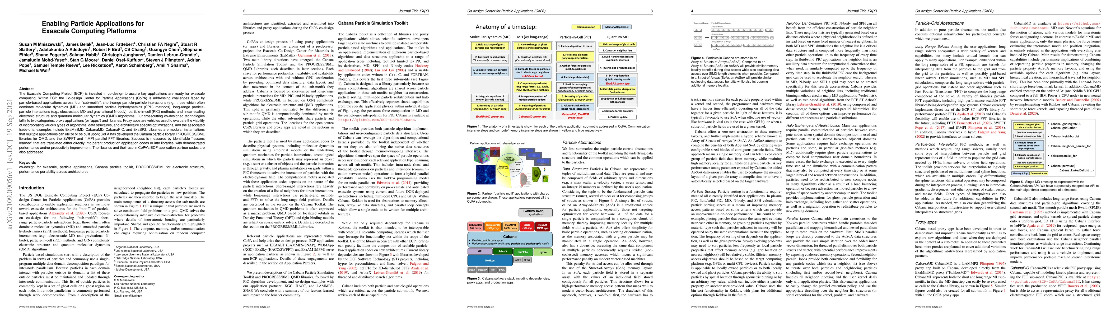 The Exascale Computing Project's Co-design Center for Particle Applications (CoPA) aims to prepare particle-based applications for exascale computing by addressing challenges in short-range and long-range interactions, PIC methods, and quantum dynamics. CoPA develops proxy applications and modular libraries to evaluate and optimize algorithms, with success measured by performance and productivity improvements in production codes.