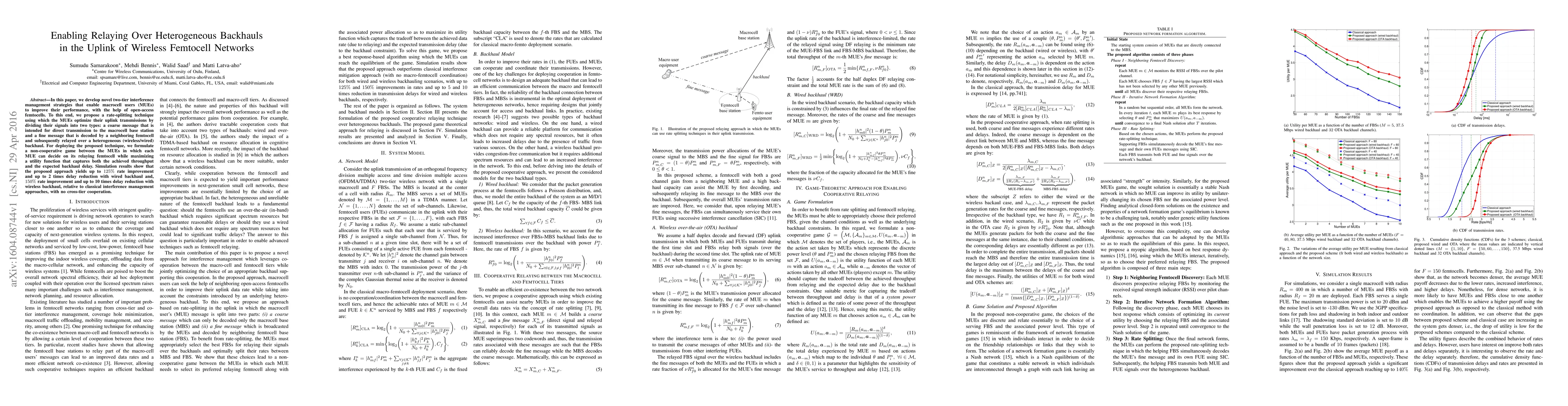 In this paper, we develop novel two-tier interference management strategies that enable macrocell users (MUEs) to improve their performance, with the help of open-access femtocells. To this end, we propose a rate-splitting technique using which the MUEs optimize their uplink transmissions by dividing their signals into two types: a coarse message that is intended for direct transmission to the macrocell base station and a fine message that is decoded by a neighboring femtocell and subsequently relayed over a heterogeneous (wireless/wired) backhaul. For deploying the proposed technique, we formulate a non-cooperative game between the MUEs in which each MUE can decide on its relaying femtocell while maximizing a utility function that captures both the achieved throughput and the expected backhaul delay. Simulation results show that the proposed approach yields up to 125% rate improvement and up to 2 times delay reduction with wired backhaul and, 150% rate improvement and up to 10 times delay reduction with wireless backhaul, relative to classical interference management approaches, with no cross-tier cooperation.