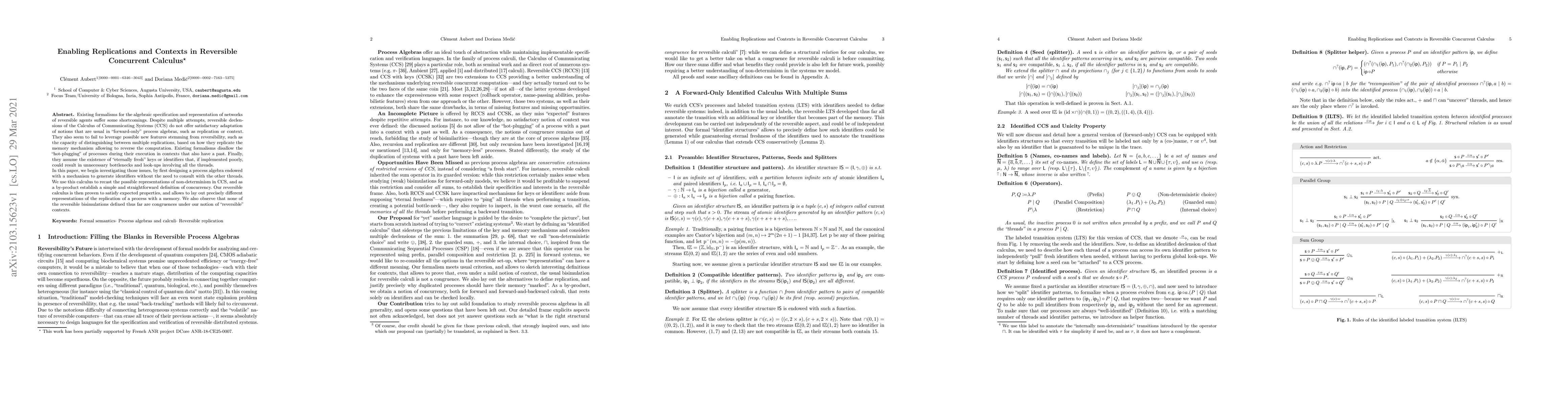 Existing formalisms for the algebraic specification and representation of networks of reversible agents suffer some shortcomings. Despite multiple attempts, reversible declensions of the Calculus of Communicating Systems (CCS) do not offer satisfactory adaptation of notions that are usual in ''forward-only'' process algebras, such as replication or context. They also seem to fail to leverage possible new features stemming from reversibility, such as the capacity of distinguishing between multiple replications, based on how they replicate the memory mechanism allowing to reverse the computation. Existing formalisms disallow the ''hot-plugging'' of processes during their execution in contexts that also have a past. Finally, they assume the existence of ''eternally fresh'' keys or identifiers that, if implemented poorly, could result in unnecessary bottlenecks and look-ups involving all the threads. In this paper, we begin investigating those issues, by first designing a process algebra endowed with a mechanism to generate identifiers without the need to consult with the other threads. We use this calculus to recast the possible representations of non-determinism in CCS, and as a by-product establish a simple and straightforward definition of concurrency. Our reversible calculus is then proven to satisfy expected properties, and allows to lay out precisely different representations of the replication of a process with a memory. We also observe that none of the reversible bisimulations defined thus far are congruences under our notion of ''reversible'' contexts.