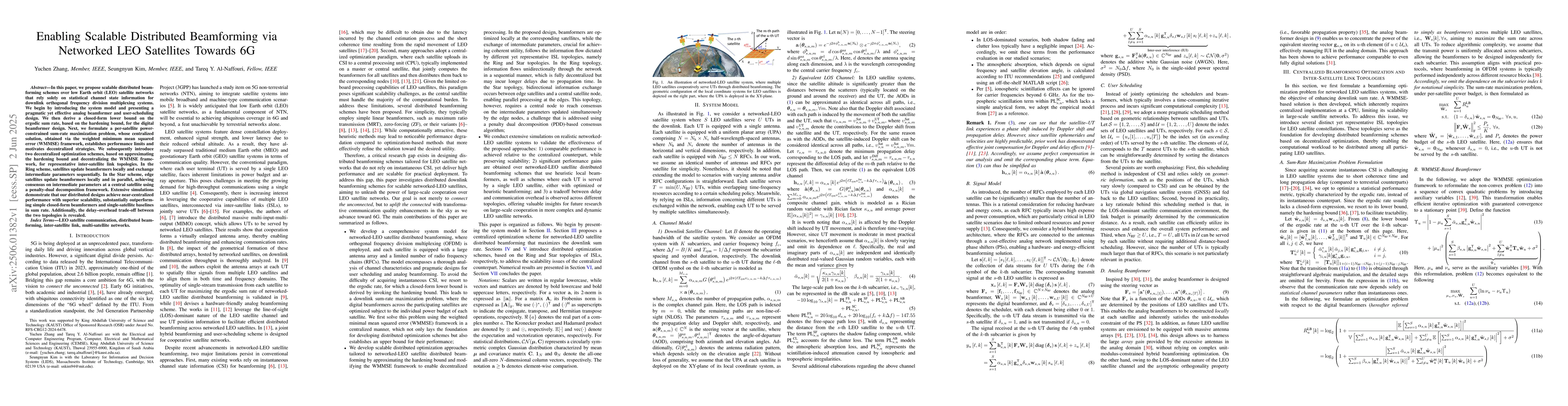 The paper presents novel decentralized optimization schemes for distributed beamforming in LEO satellite networks, along with a closed-form sum-rate lower bound for digital beamformer design.