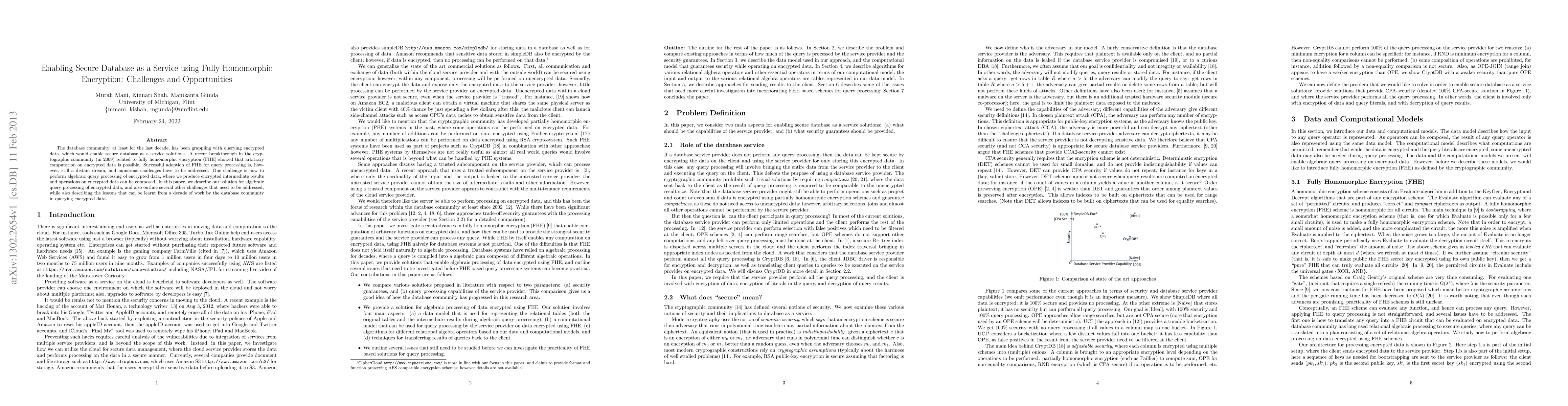 This paper explores the potential of fully homomorphic encryption (FHE) to enable secure database-as-a-service solutions, detailing a solution for algebraic query processing of encrypted data. It also highlights significant challenges and opportunities that remain, drawing on a decade of database community efforts in querying encrypted data.