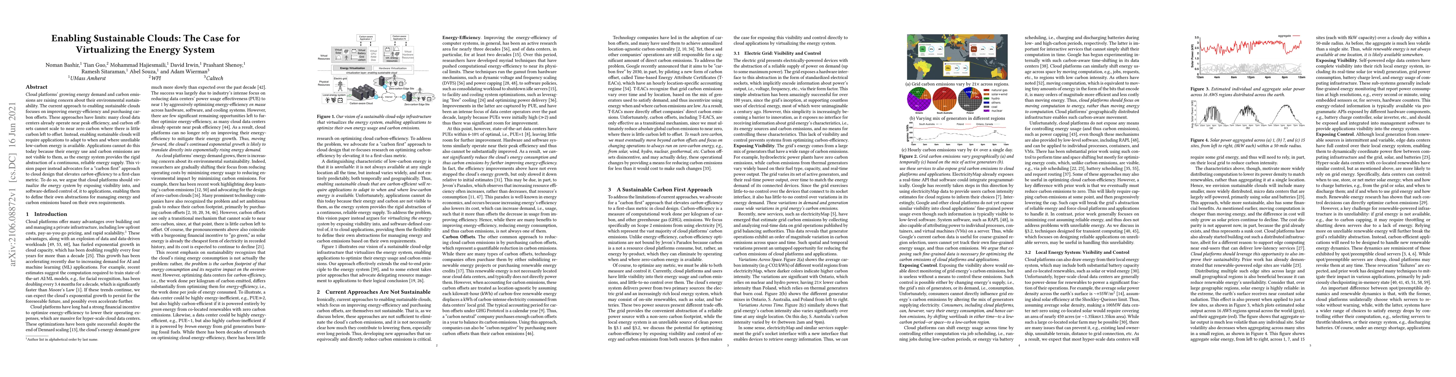 Cloud platforms' growing energy demand and carbon emissions are raising concern about their environmental sustainability. The current approach to enabling sustainable clouds focuses on improving energy-efficiency and purchasing carbon offsets. These approaches have limits: many cloud data centers already operate near peak efficiency, and carbon offsets cannot scale to near zero carbon where there is little carbon left to offset. Instead, enabling sustainable clouds will require applications to adapt to when and where unreliable low-carbon energy is available. Applications cannot do this today because their energy use and carbon emissions are not visible to them, as the energy system provides the rigid abstraction of a continuous, reliable energy supply. This vision paper instead advocates for a ``carbon first'' approach to cloud design that elevates carbon-efficiency to a first-class metric. To do so, we argue that cloud platforms should virtualize the energy system by exposing visibility into, and software-defined control of, it to applications, enabling them to define their own abstractions for managing energy and carbon emissions based on their own requirements.