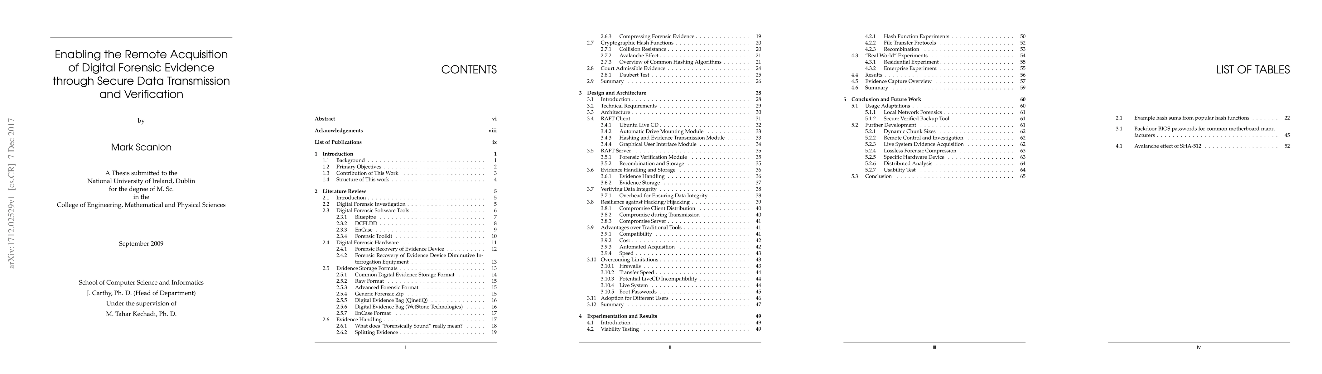 Providing the ability to any law enforcement officer to remotely transfer an image from any suspect computer directly to a forensic laboratory for analysis, can only help to greatly reduce the time wasted by forensic investigators in conducting on-site collection of computer equipment. RAFT (Remote Acquisition Forensic Tool) is a system designed to facilitate forensic investigators by remotely gathering digital evidence. This is achieved through the implementation of a secure, verifiable client/server imaging architecture. The RAFT system is designed to be relatively easy to use, requiring minimal technical knowledge on behalf of the user. One of the key focuses of RAFT is to ensure that the evidence it gathers remotely is court admissible. This is achieved by ensuring that the image taken using RAFT is verified to be identical to the original evidence on a suspect computer.