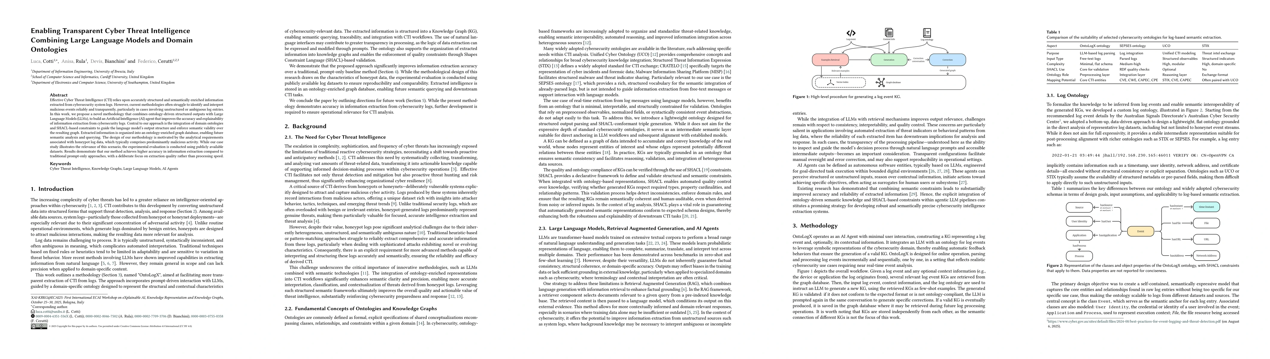 Effective Cyber Threat Intelligence (CTI) relies upon accurately structured and semantically enriched information extracted from cybersecurity system logs. However, current methodologies often struggle to identify and interpret malicious events reliably and transparently, particularly in cases involving unstructured or ambiguous log entries. In this work, we propose a novel methodology that combines ontology-driven structured outputs with Large Language Models (LLMs), to build an Artificial Intelligence (AI) agent that improves the accuracy and explainability of information extraction from cybersecurity logs. Central to our approach is the integration of domain ontologies and SHACL-based constraints to guide the language model's output structure and enforce semantic validity over the resulting graph. Extracted information is organized into an ontology-enriched graph database, enabling future semantic analysis and querying. The design of our methodology is motivated by the analytical requirements associated with honeypot log data, which typically comprises predominantly malicious activity. While our case study illustrates the relevance of this scenario, the experimental evaluation is conducted using publicly available datasets. Results demonstrate that our method achieves higher accuracy in information extraction compared to traditional prompt-only approaches, with a deliberate focus on extraction quality rather than processing speed.