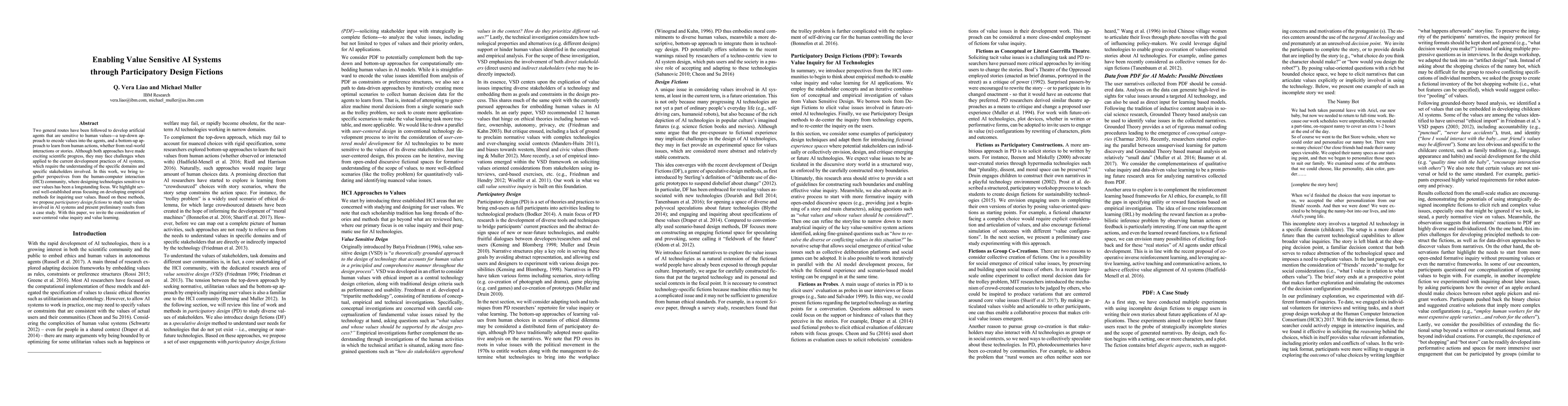 Researchers propose participatory design fictions to study user values in AI systems, inviting a user-centered approach to developing value-sensitive AI. This method combines established HCI methods with storytelling to inform AI development practices.