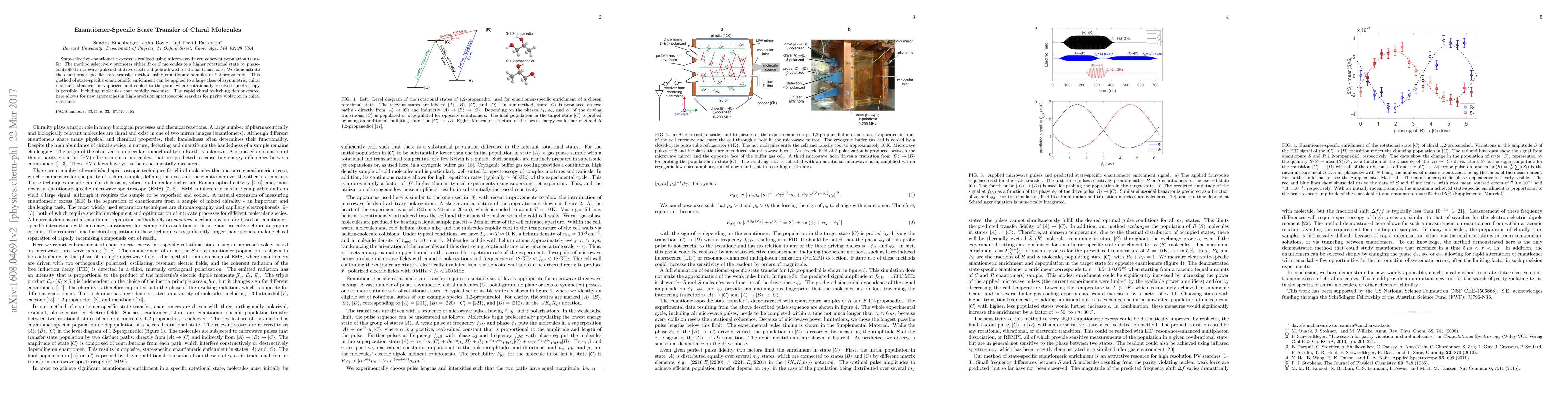 This paper presents a novel method for selectively promoting enantiomers of chiral molecules to higher rotational states using microwave-driven coherent population transfer, demonstrated with 1,2-propanediol. This technique can be applied to a wide range of chiral molecules, enabling new high-precision spectroscopic searches for parity violation.