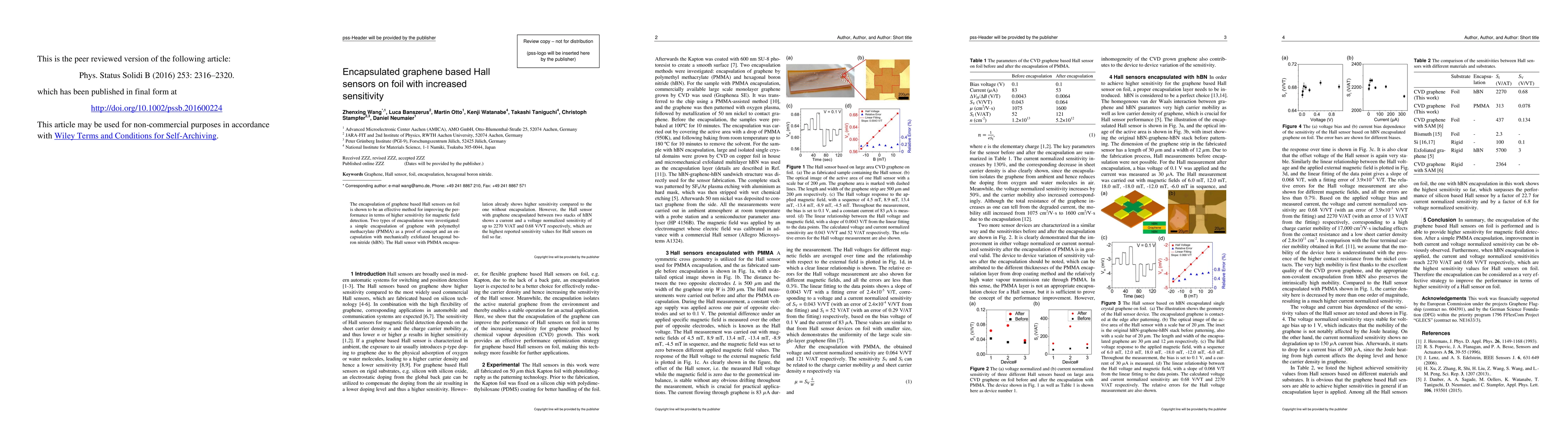 This work presents a novel approach to fabricating high-performance graphene-based Hall sensors using encapsulation materials.