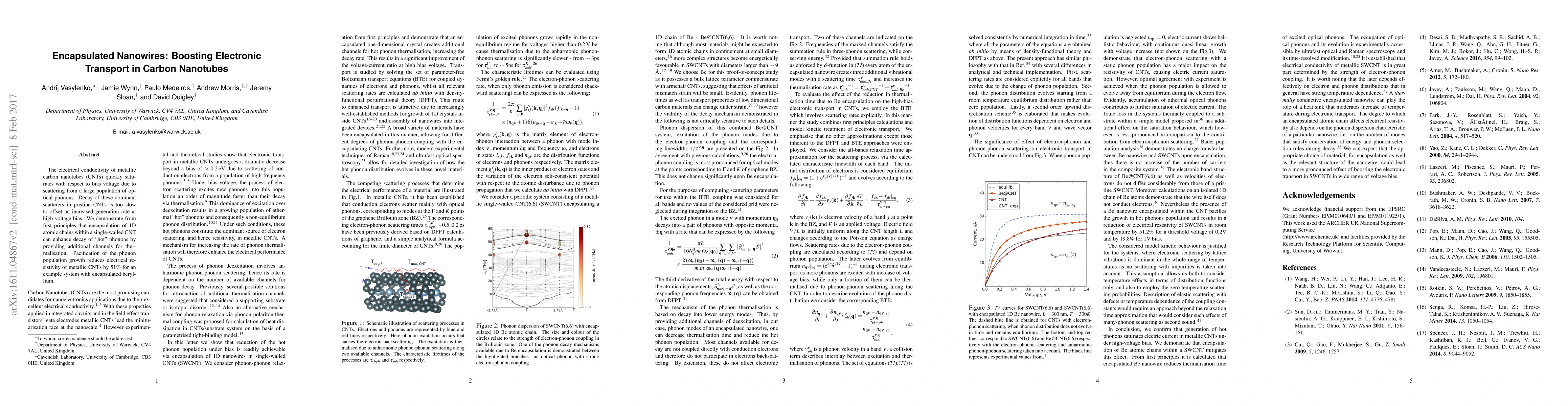 This paper demonstrates that encapsulating metallic carbon nanotubes within a single-walled CNT can significantly enhance the decay of optical phonons, thereby reducing electrical resistivity by 51%. The encapsulation provides additional thermalization channels, mitigating the saturation of electrical conductivity at high voltage biases.