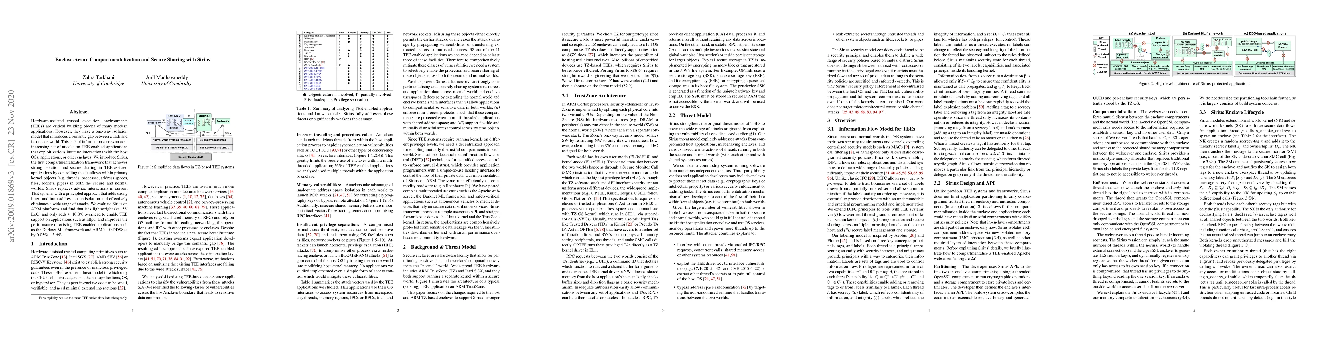 Researchers introduce Sirius, a framework that enhances security and sharing in trusted execution environments (TEEs) by controlling dataflows within primary kernel objects, reducing attacks on TEE-enabled applications by up to 10.8%.