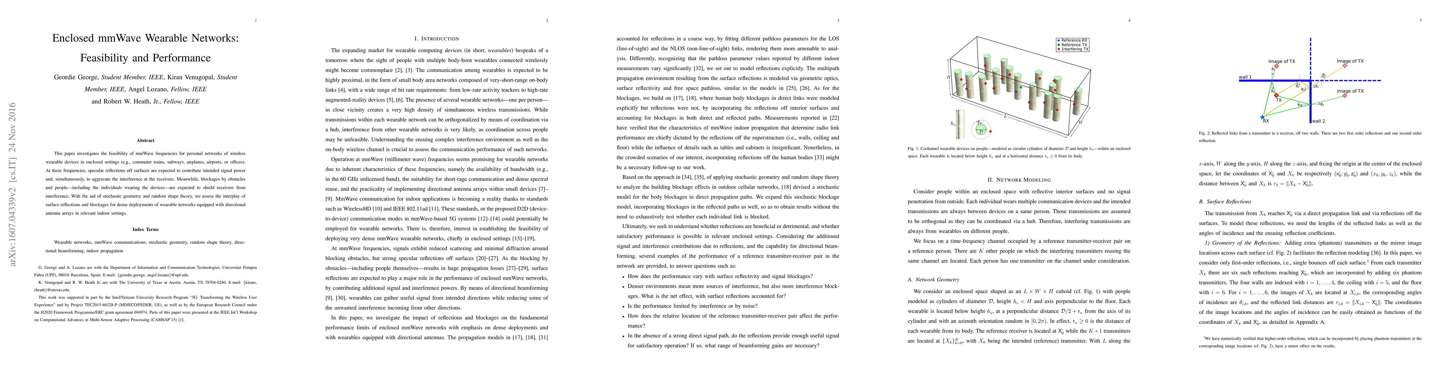 The paper proposes a simple stochastic model that incorporates effects of blockages, reflections, and directional beamforming for mmWave wearable networks in enclosed environments.