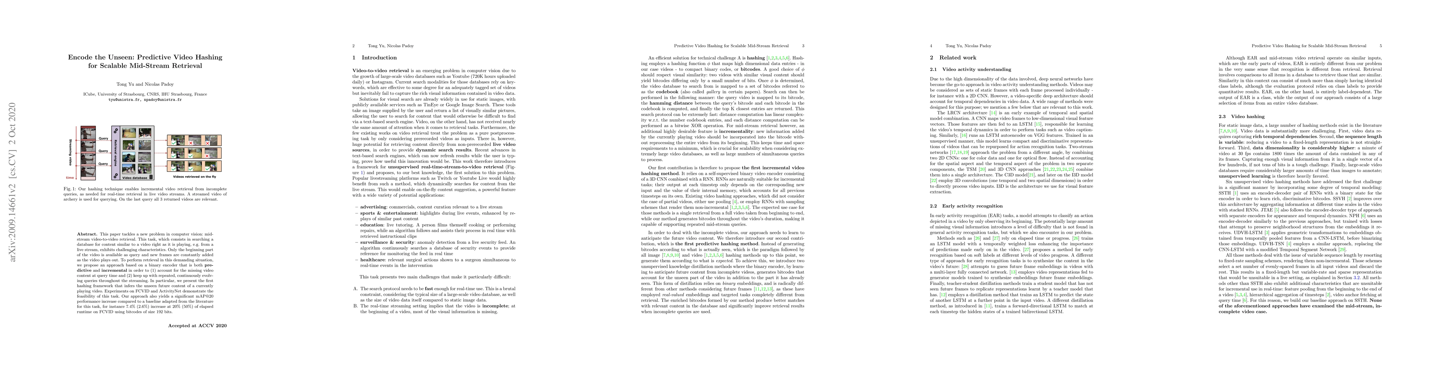 This paper introduces a novel predictive video hashing framework for mid-stream video retrieval, enabling searches for content similar to a live-streaming video as it plays. The proposed incremental binary encoder significantly improves mAP@20 performance, achieving a 7.4% increase at 20% runtime on FCVID.