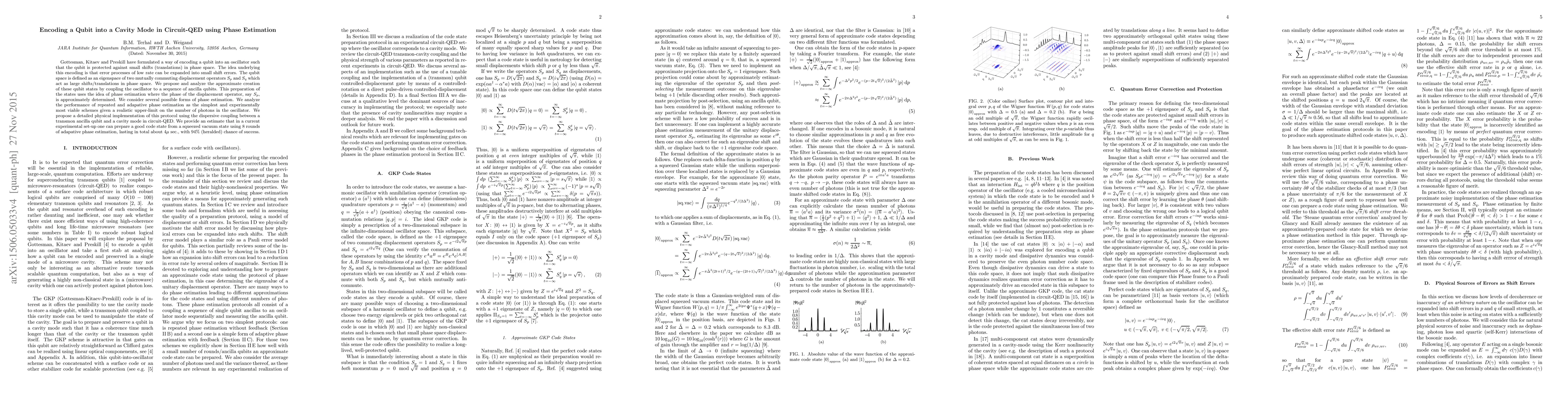 This paper proposes a method for encoding a qubit into a cavity mode using phase estimation to protect against small phase shifts, leveraging the dispersive coupling in circuit-QED. It estimates that with adaptive phase estimation, a good code state can be prepared from a squeezed vacuum state with 94% success in a current experimental setup.