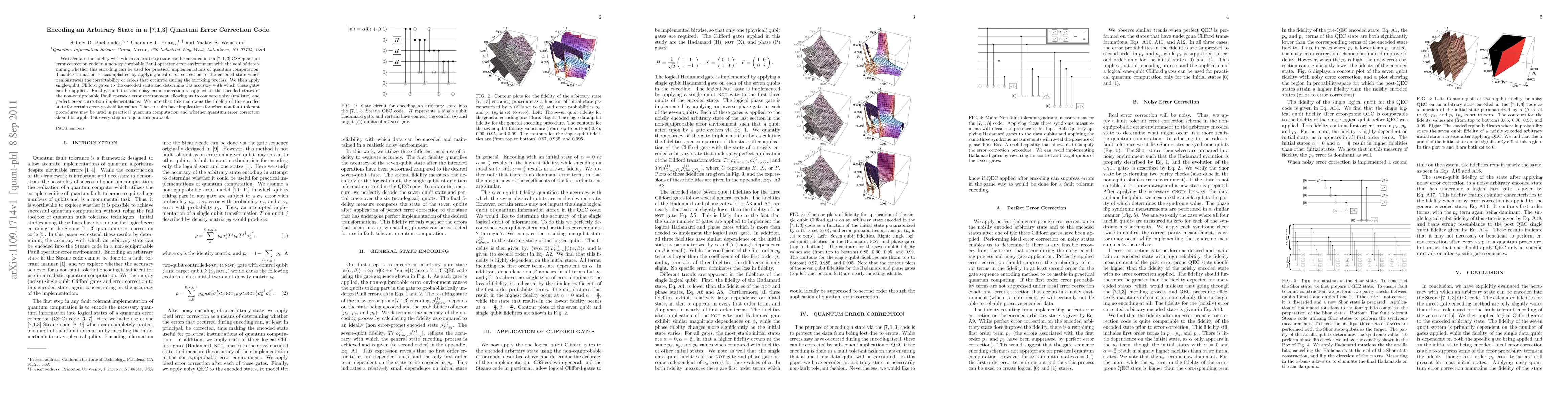 This paper investigates the fidelity of encoding arbitrary quantum states into a [7,1,3] CSS code under non-equiprobable Pauli errors, demonstrating error correction's effectiveness and the accuracy of single-qubit Clifford gates. It concludes that while fault-tolerant error correction maintains state fidelity, practical quantum computation may not always require continuous error correction at every step.